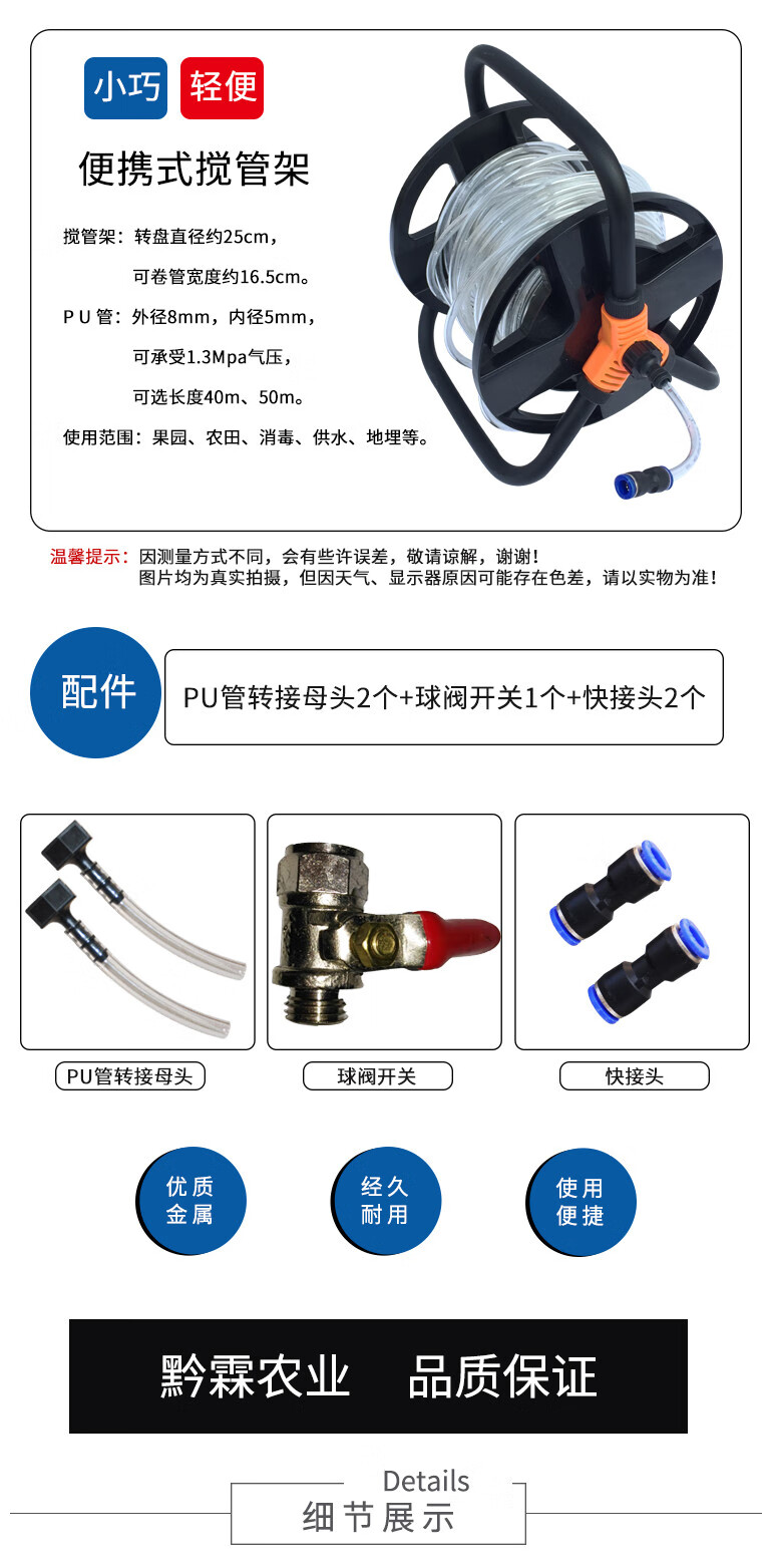 分类:机具配件;包装清单:便携搅管架 40米PU管 配件一套;