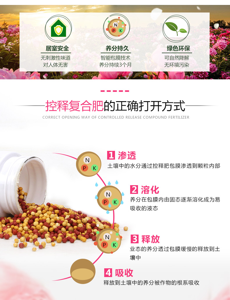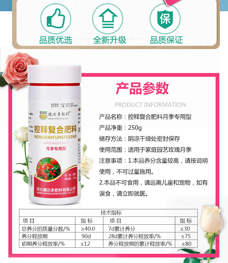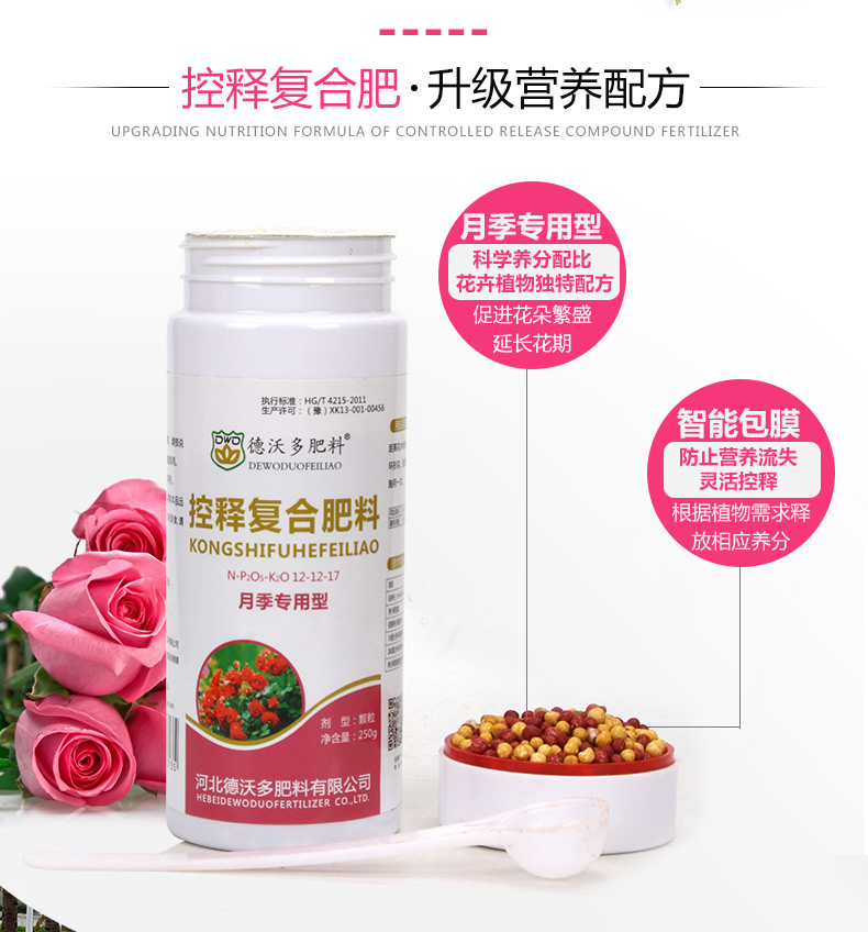 适用对象:观花植物;性状:固体;营养类型:控释肥;品牌:德沃多肥料;包装清单:控释肥250g月季专用型;