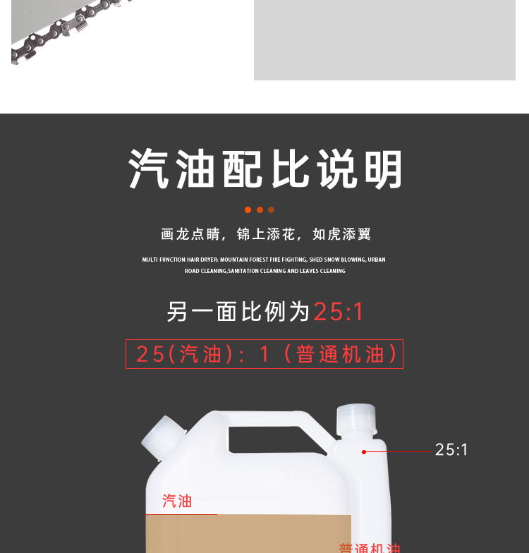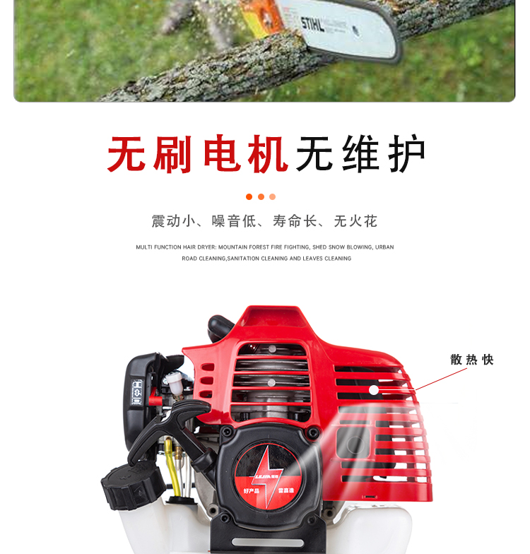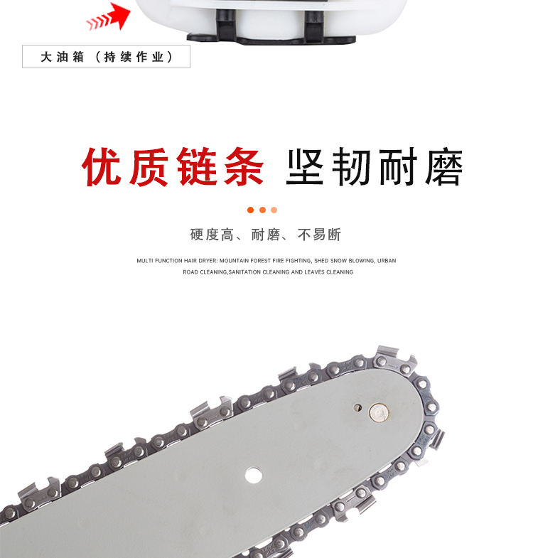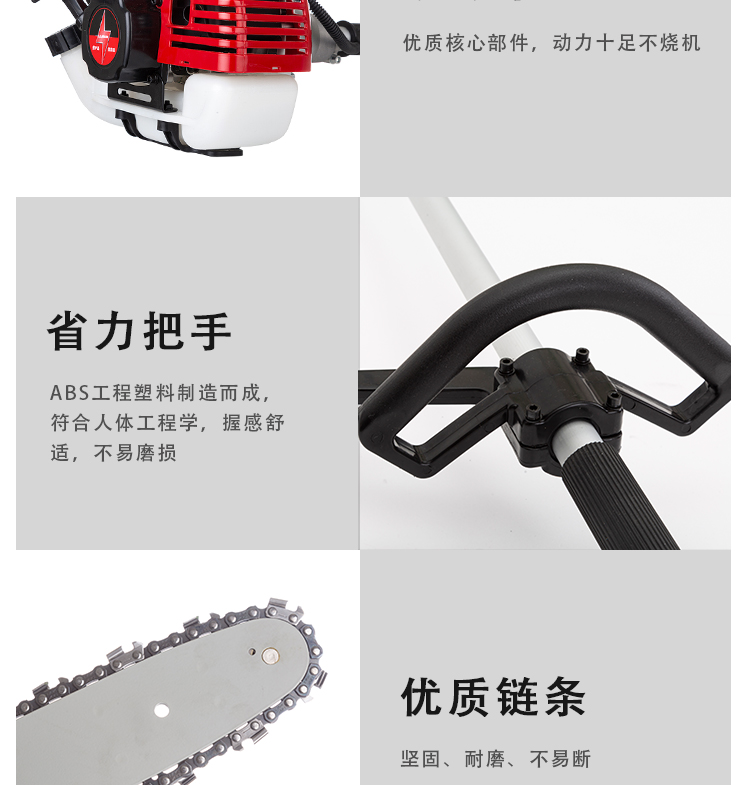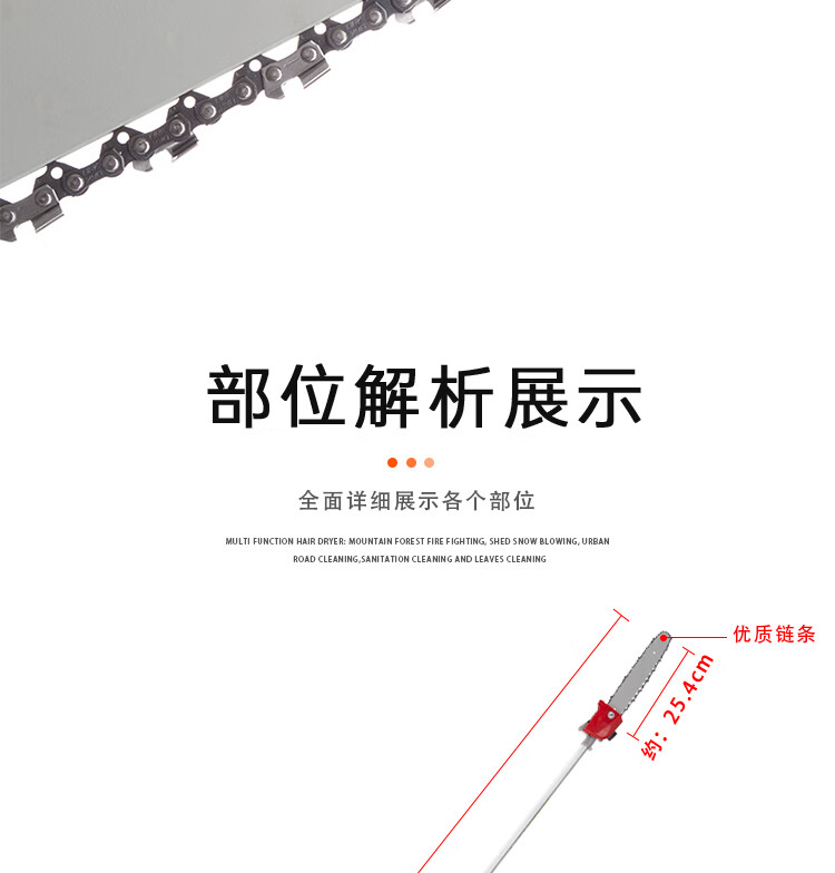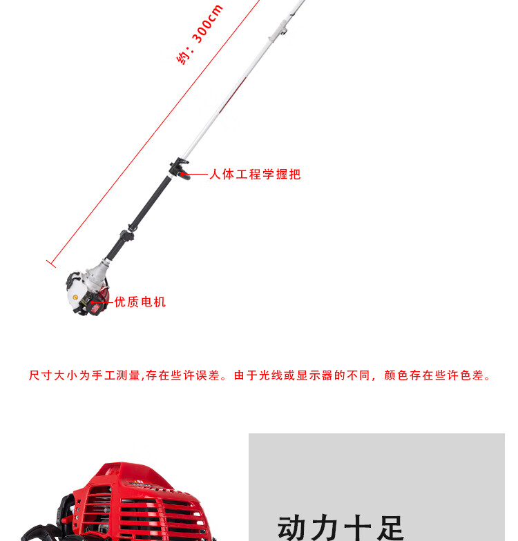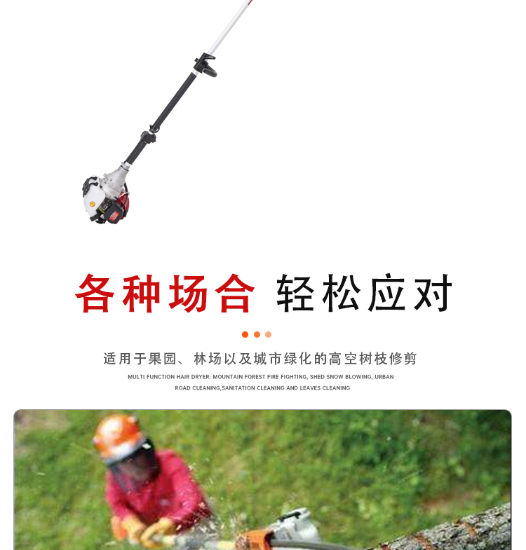 机械类型:油锯;动力类型:二冲程;适用对象:树木,草坪,路旁树篱,其它;包装清单:高枝油锯;