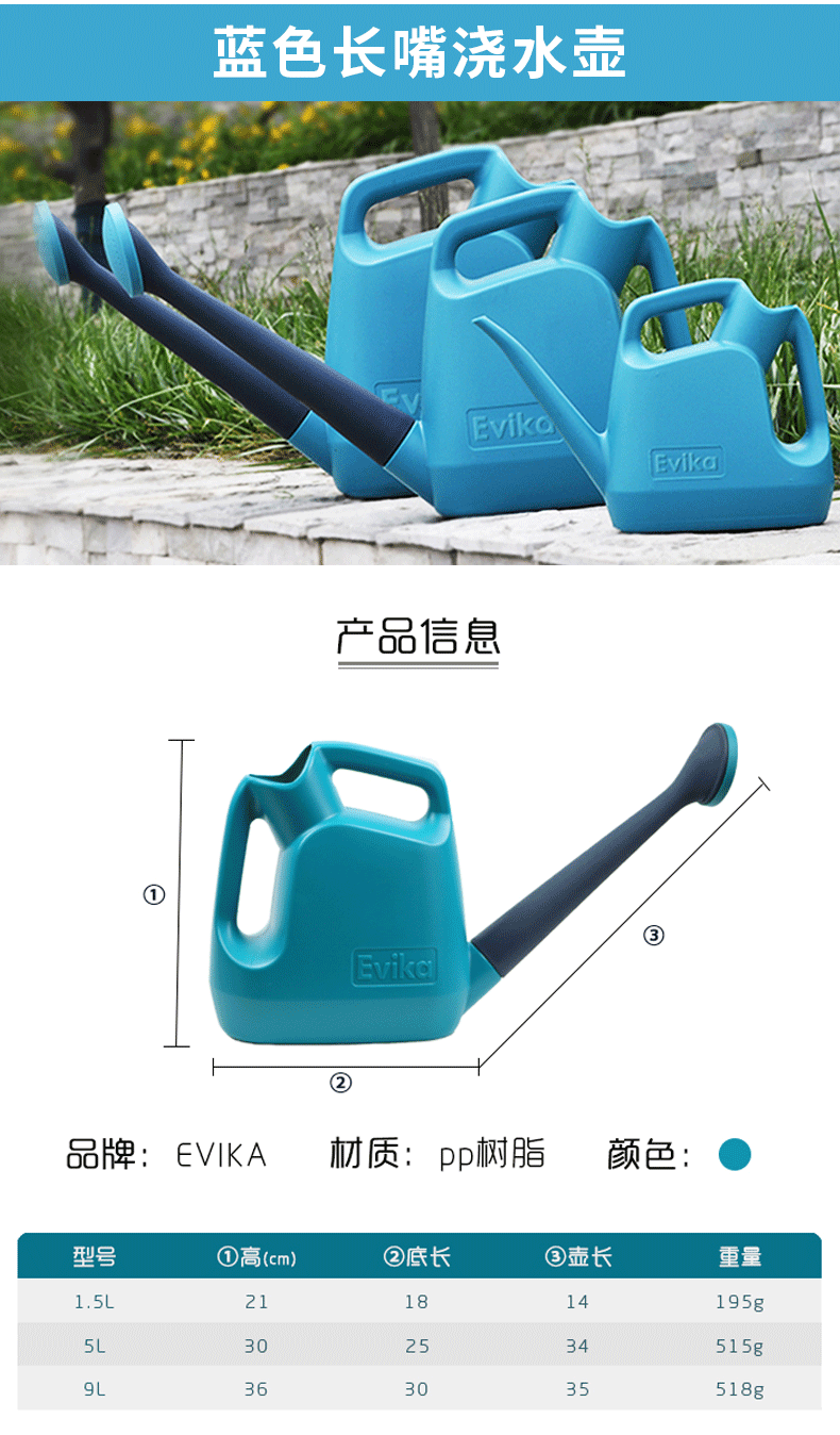 洒水浇水壶:水壶/花洒;分类:洒水浇水壶;材质:塑料;产地:国产;品牌:Evika;包装清单:浇水壶*1;