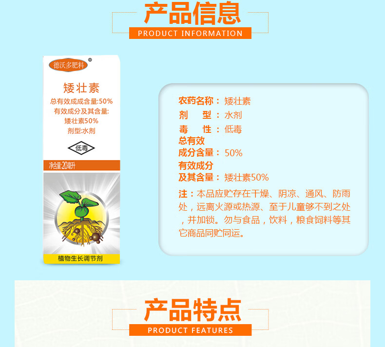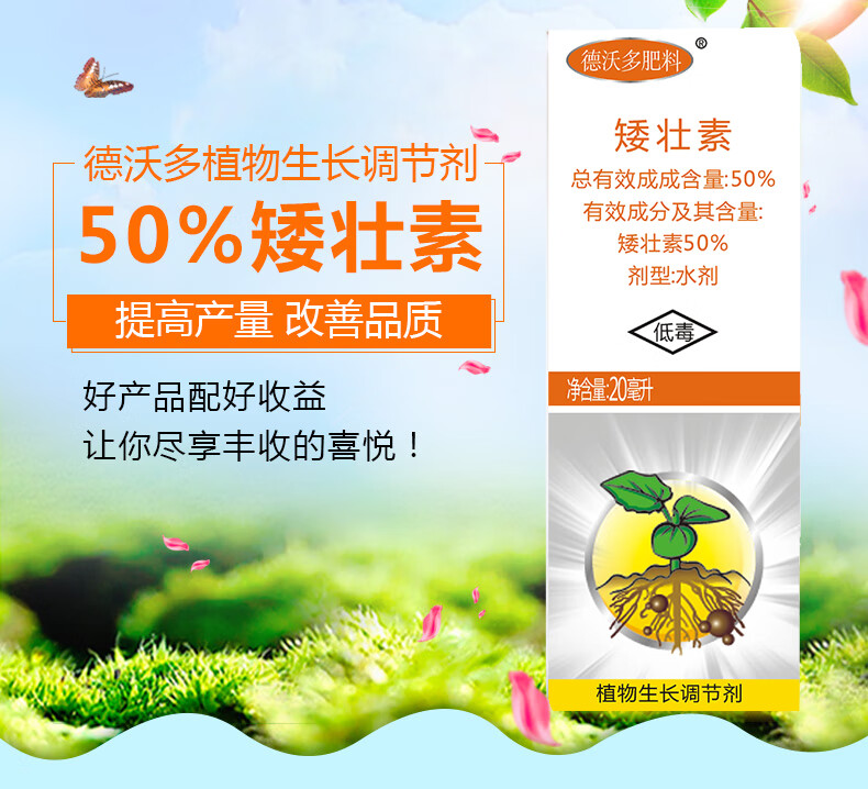 药剂种类:矮化剂;功效:矮化;性状:液体;品牌:德沃多肥料;包装清单:德沃多矮壮素20ml;