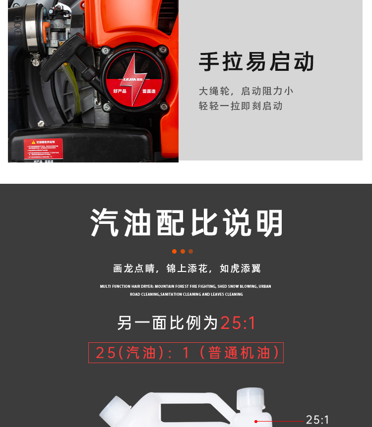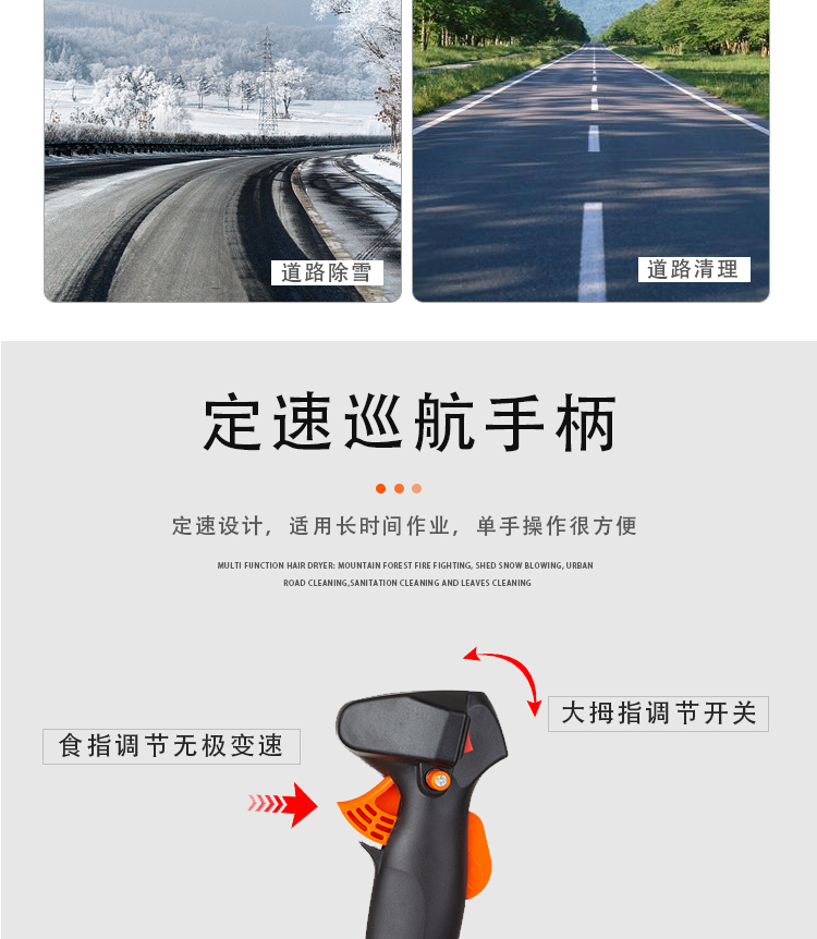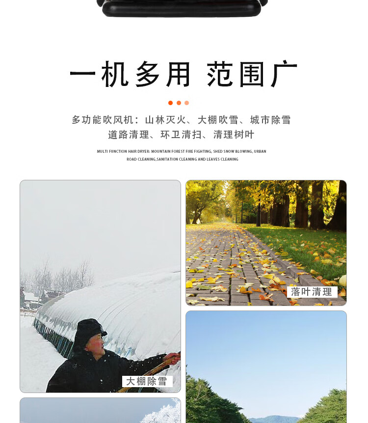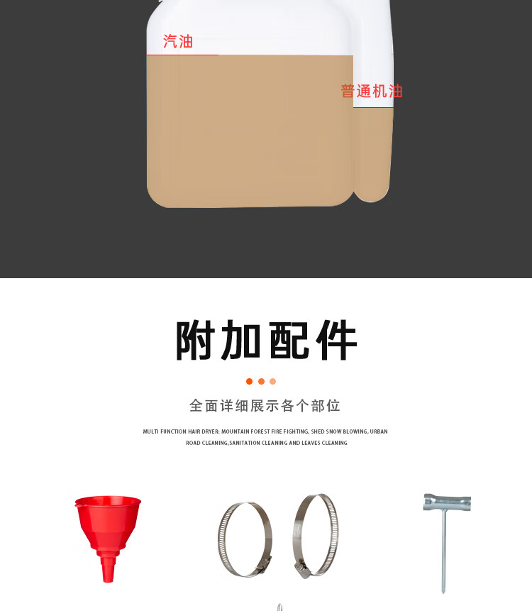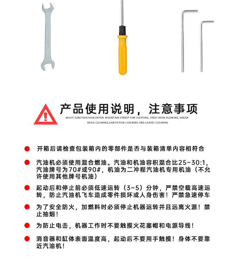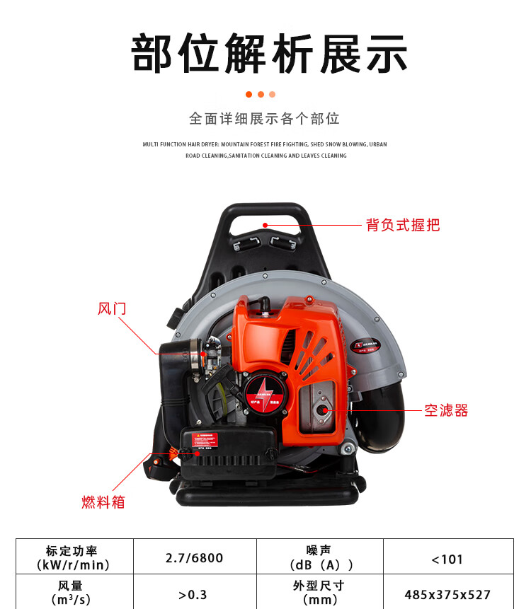 机械类型:其它;动力类型:二冲程;适用对象:树木,草坪,路旁树篱,其它;包装清单:吹风机1台;