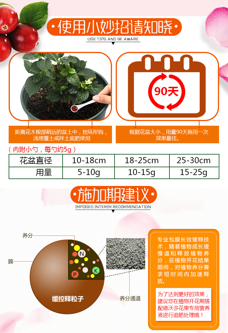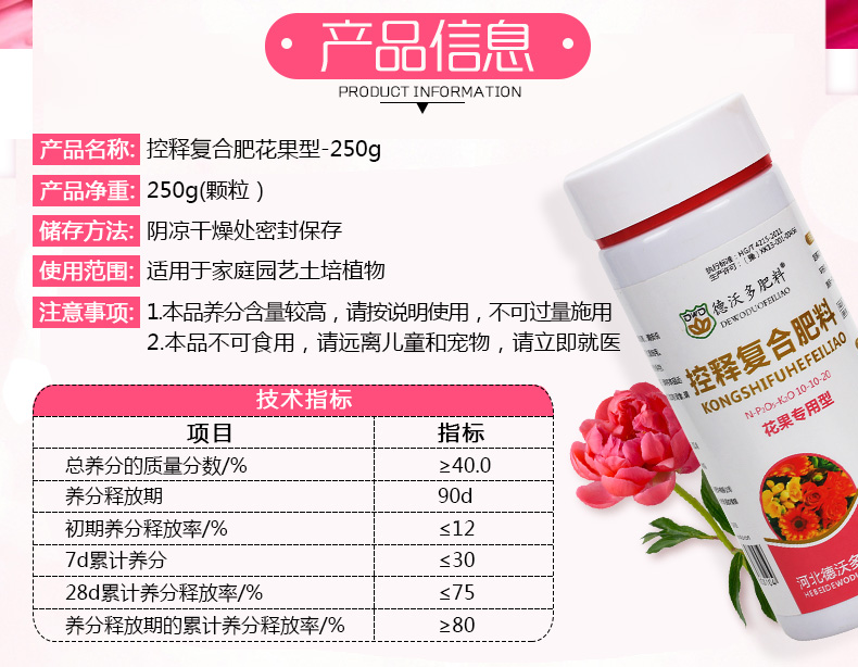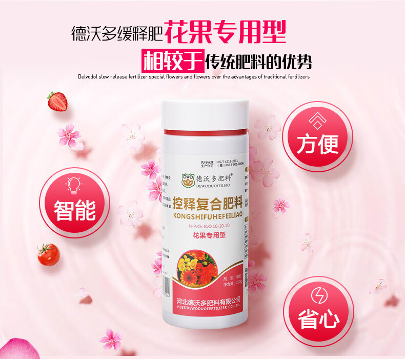 适用对象:蔬菜水果,观花植物;性状:固体;营养类型:控释肥;品牌:德沃多肥料;包装清单:控释肥250g花果专用型;
