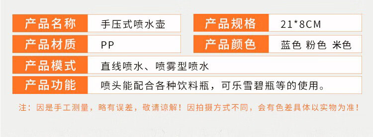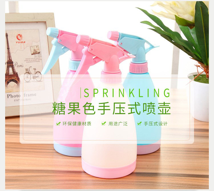 洒水浇水壶:喷壶;分类:洒水浇水壶;材质:塑料;产地:国产;品牌:爱心助农;包装清单:手持式糖果色喷壶1个;