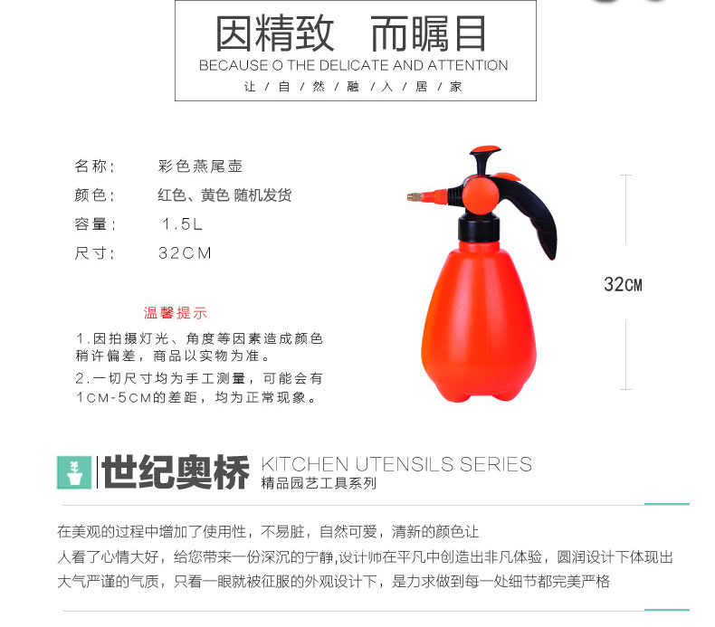 是否可定制:不可定制;附加功能:多功能;尺寸:31cm以上;材质:塑料;国产/进口:国产;适用空间:桌面,户外;风格:简约;底部留孔:无孔;包装清单:喷壶X1;