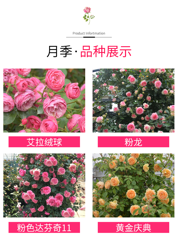 开花季节:长花期;是否含花盆:带盆栽好;适用空间:庭院,阳台,客厅,书房;植物品种:月季;植物类别:爬藤植物;颜色:黄色;包装清单:生根粉一包、肥料一包、花苗一颗;