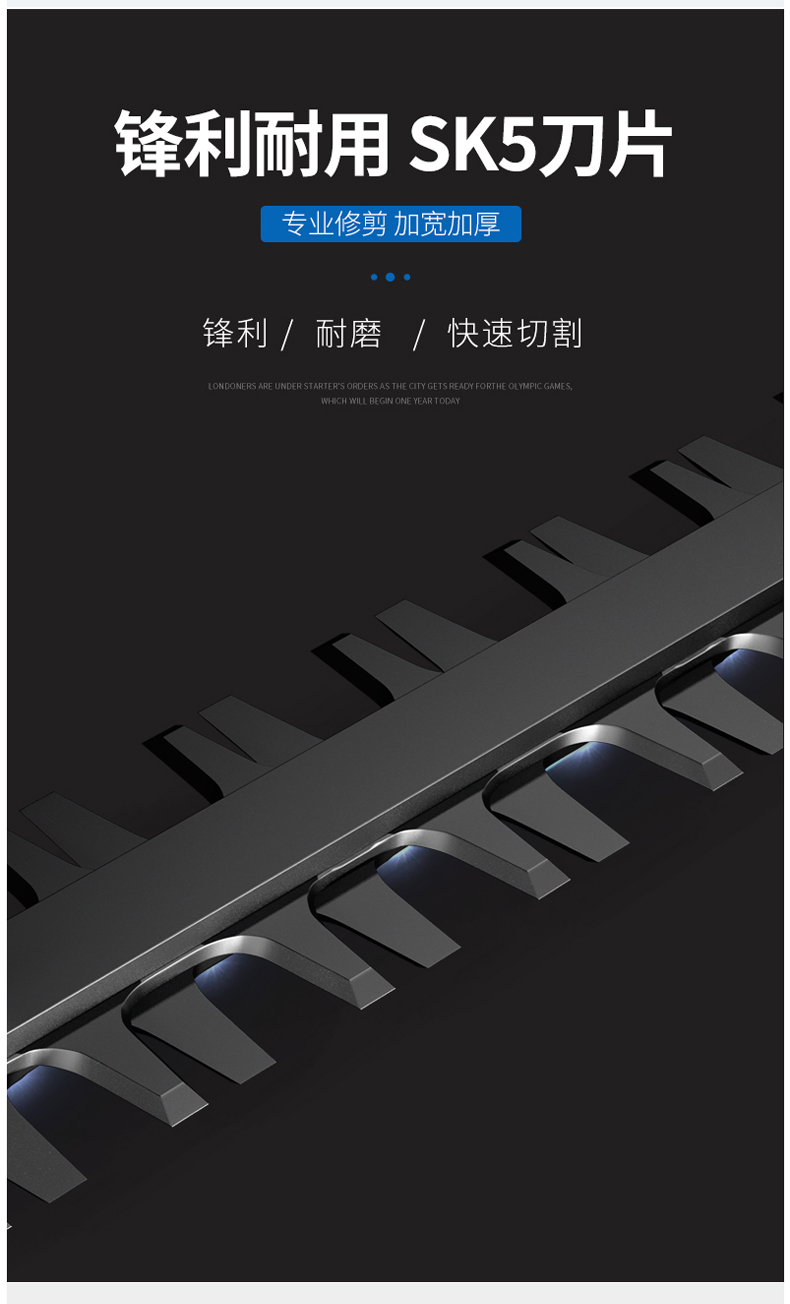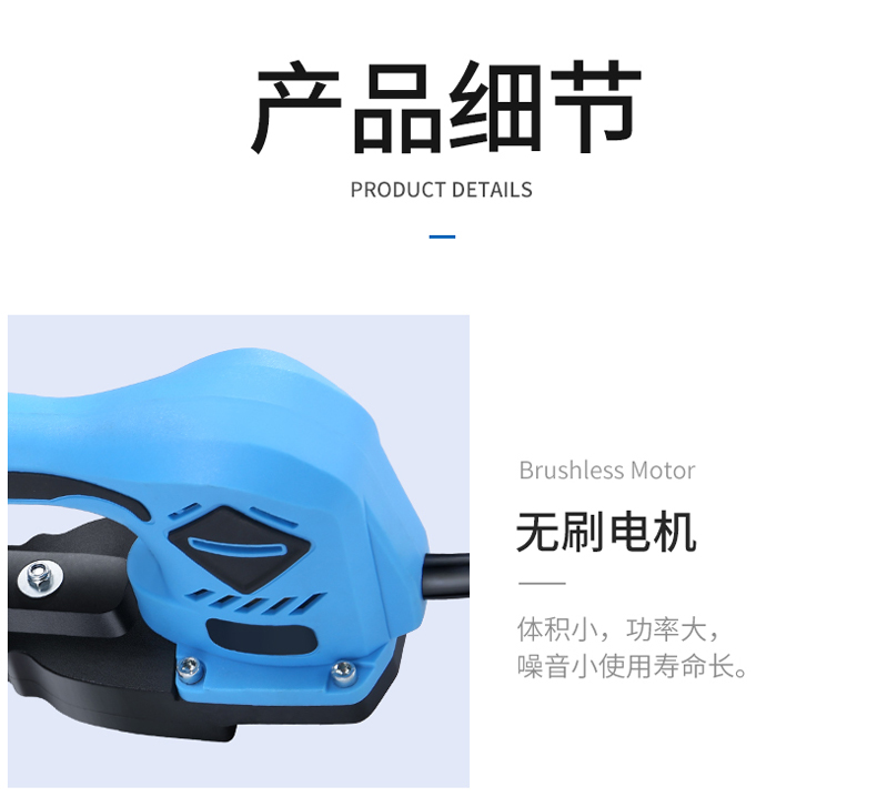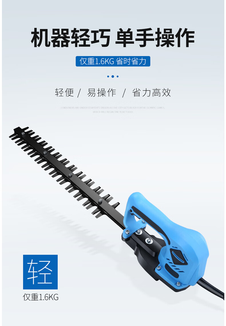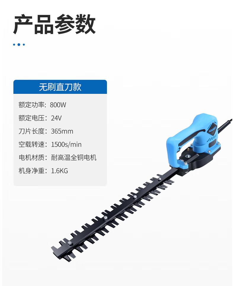适用对象:路旁树篱,树木;机械类型:绿篱修剪机;动力类型:电动;包装清单:无刷绿篱机+锂电池;