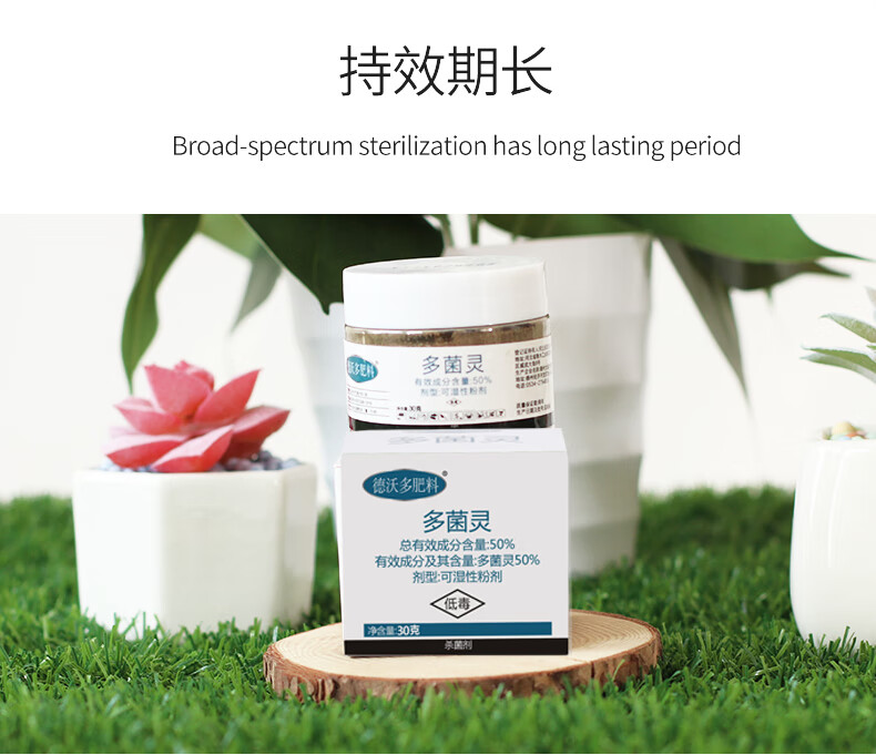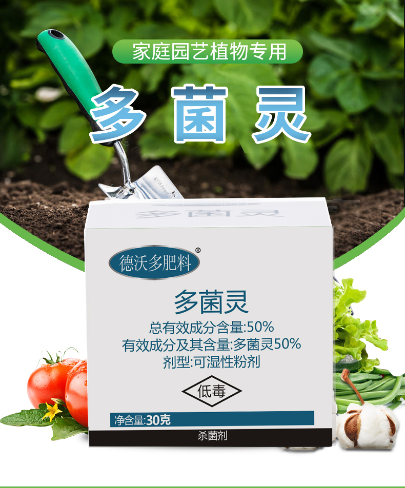 药剂种类:杀菌剂;功效:杀菌;性状:其它;品牌:德沃多肥料;包装清单:德沃多盒装多菌灵30g;