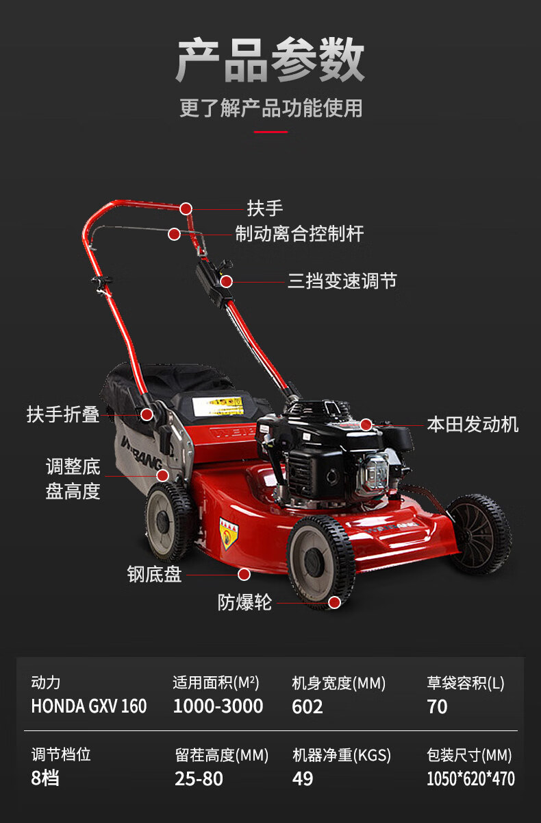 适用对象:草坪;机械类型:草坪修剪机;动力类型:四冲程;包装清单:推草机*1;