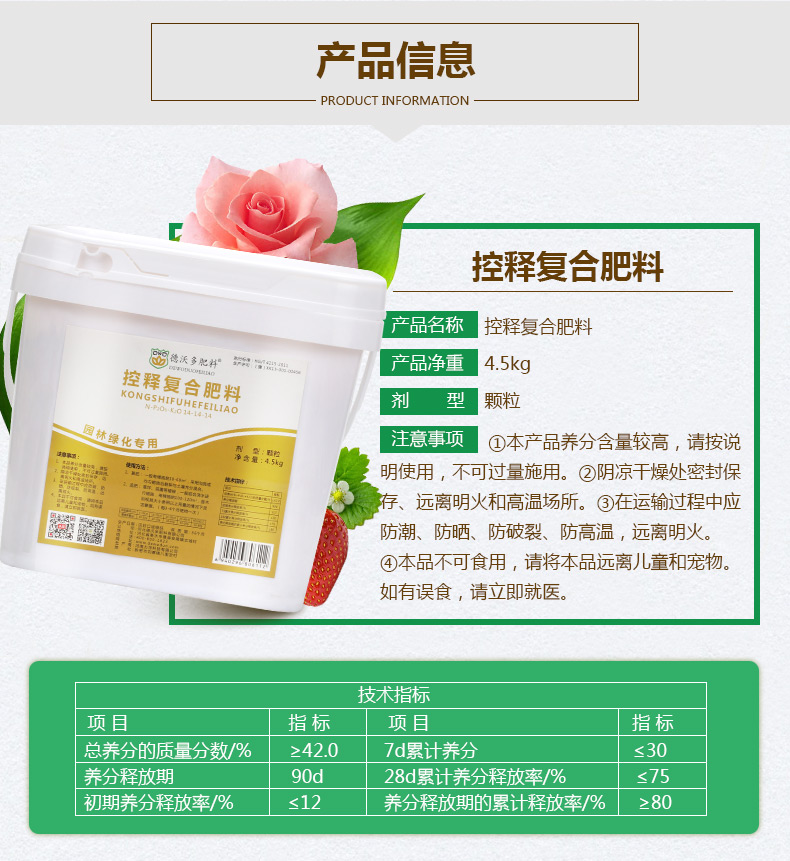 性状:固体;营养类型:控释肥;适用对象:多肉植物,兰科植物,通用型,水培型,蔬菜水果,观花植物,观叶植物,苗木,盆景,其它;品牌:德沃多肥料;包装清单:德沃多控释复合肥料方桶4.5kg;