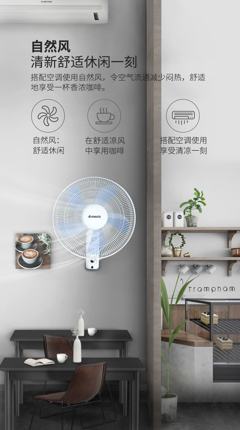 产品类别:壁扇;操控方式:遥控控制;摇头方式:左右摇头;定频/变频 定频:一种用于给空间区域(一般为密闭)提供处理空气温度变化的机组。变频:变频风扇是在常规风扇的结构上增加了一个变频器。变频电风扇普遍采用7片柔风扇叶与32挡无级调速的设计。:定频;风类模式:自然风;睡眠风;风力档位:三档调节;定时范围:2小时(含)-8小时(含);品牌:艾美特(Airmate);认证型号:FW4035R;产品产地:国产;产品尺寸(mm):-;额定功率(W):60W;产品净重(kg):3kg;扇叶片数:5叶;电源线长度(m):1.5;包装清单:主机x1,遥控器x1,说明书x1;