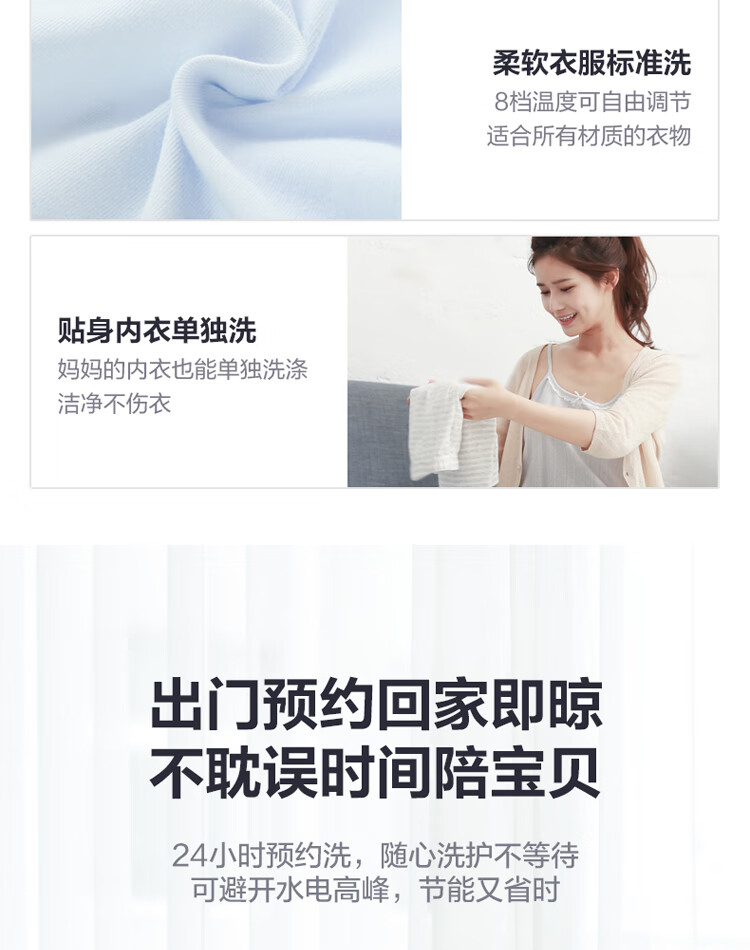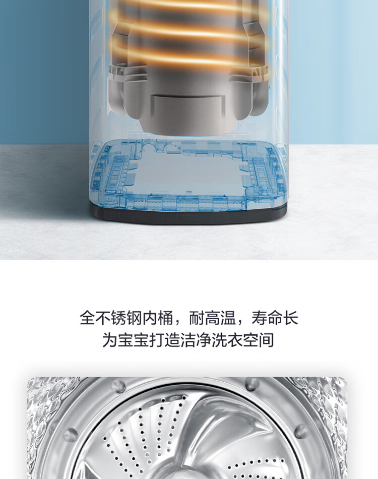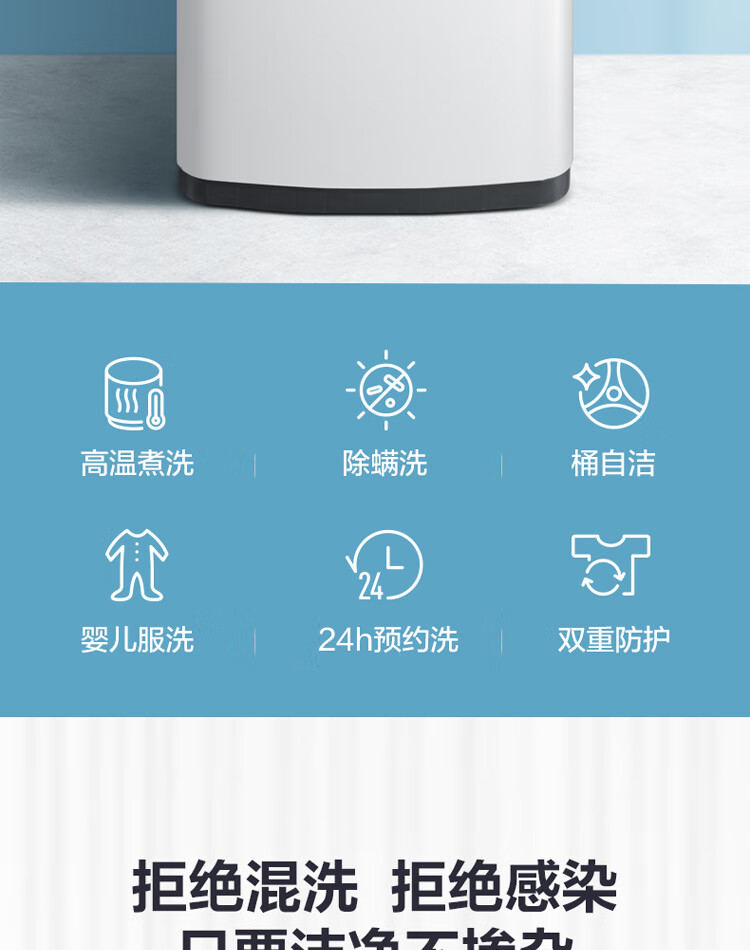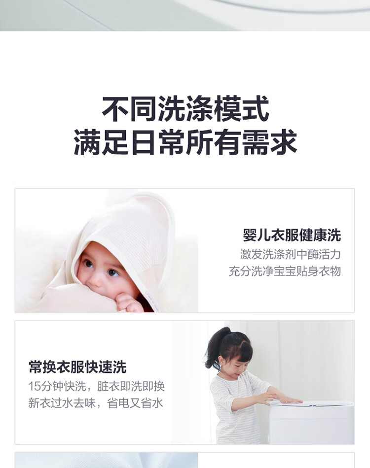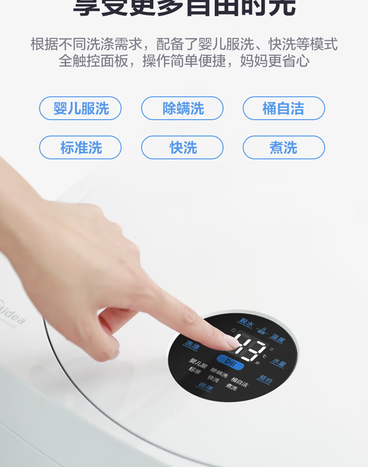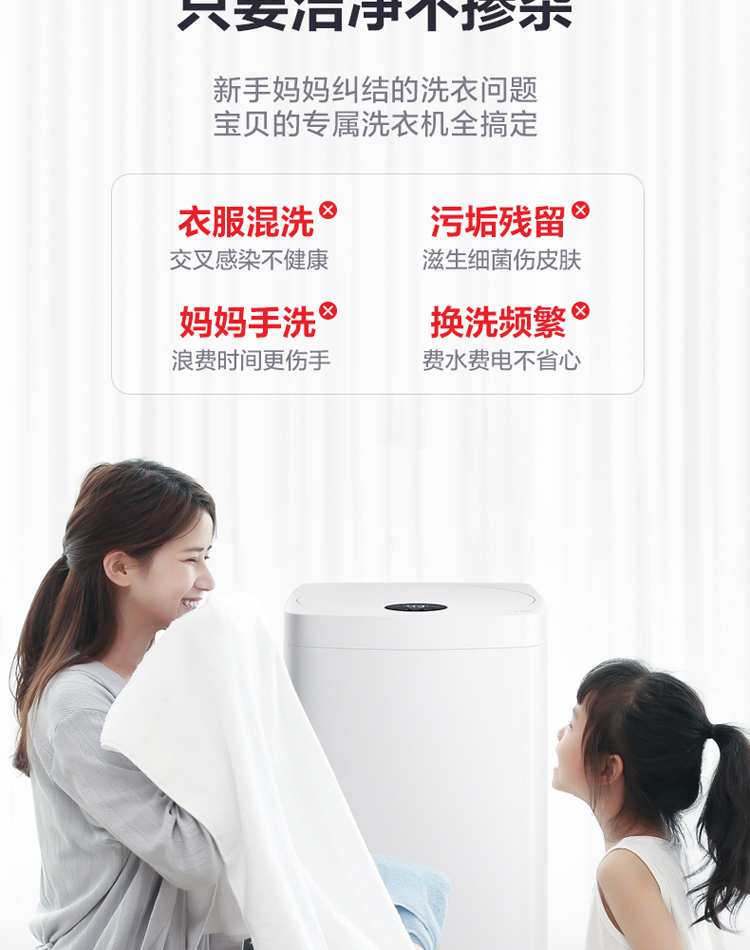 产品类型:母婴洗;能效等级:三级能效;宽度:50cm及以下;颜色:白色;排水类型:下排水;洗涤容量:5kg及以下;高度:70.1-75cm;深度:50cm及以下;用户优选:延保服务;电机类型:定频;特性:婴儿服 除螨洗 煮洗;自动化程度 全自动:洗衣过程自动完成; 半自动:从洗涤到脱水需要人为操作。:全自动;开门方式:顶开式;品牌:美的;系列:手搓洗;产品类型:波轮式;颜色:白色;操控方式 分为电脑控制(通过电子显示屏调节)和机械控制(通过机械旋钮或按钮调节)。:电脑控制;认证型号 认证型号:CCC证书上的产品型号信息。:MB30VH05;排水方式:下排水;显示方式:LED数码屏显示;产品型号:MB30VH05;电源规格:220V/50Hz;能效等级 从1级到5级分别代表能效从高到低,能效越高越节能。:3级;包装尺寸(深x宽x高)mm:520*520*840;洗净比 洗净比越高,洗出来的衣物越干净。:0.80;箱体材质:彩钢;洗涤容量(kg):3;内筒材质:不锈钢;洗涤功率(W):200;产品尺寸(深×宽×高)mm:450*430*750;洗衣程序:婴儿服 除螨洗 煮洗 快洗 桶自洁 标准;水位选择(段):高中低;脱水功率(W):200;水温调节范围:常温;30;40;50;60;95;产品重量(kg):22;排水阀漏水保护:支持排水阀漏水保护;电辅加热洗涤:支持电辅加热洗涤;筒自洁:支持筒自洁;自动断电 洗涤过程结束后,机器自动断电,不会一直待机。:支持自动断电;预约功能:支持预约功能;中途添衣:支持中途添衣;脱水功能:支持脱水功能;儿童安全锁:支持儿童安全锁;智能断电记忆:支持智能断电记忆;进水阀漏水保护:支持进水阀漏水保护;包装清单:洗衣机×1、说明书×1、保修卡×1、进水管×1;