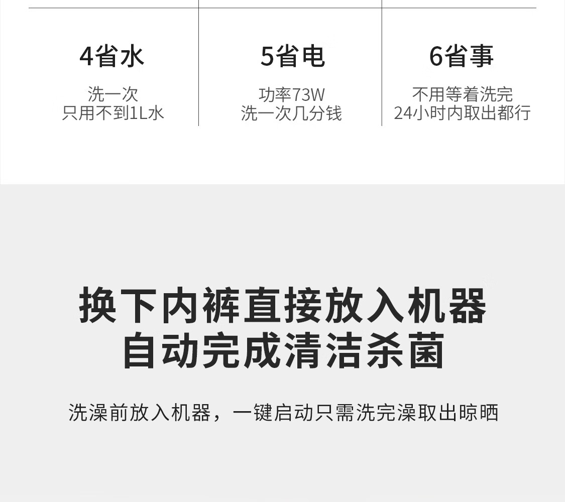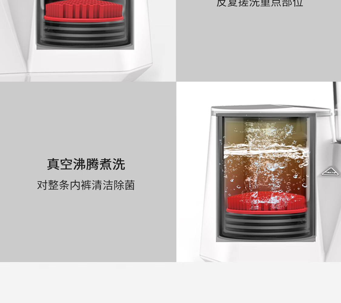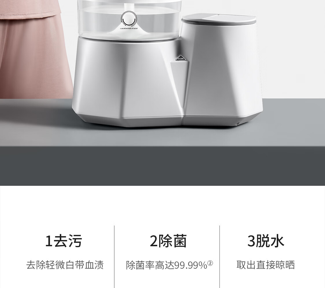 产品类型:母婴洗;能效等级:无能效等级;宽度:50cm及以下;颜色:白色;排水类型:上/下排水;洗涤容量:5kg及以下;高度:70cm及以下;用户优选:新品洗衣机,延保服务,高端洗衣机,除菌;电机类型:定频;特性:真空高温沸腾煮洗,除菌率99.99%,自动脱水;开门方式:顶开式;自动化程度 全自动:洗衣过程自动完成; 半自动:从洗涤到脱水需要人为操作。:全自动;品牌:LAUGHING-FACE;系列:内衣洗衣机;颜色:白色;产品类型:滚筒式;认证型号 认证型号:CCC证书上的产品型号信息。:LFWX-C2;排水方式:上/下排水;产品型号:内裤洗护机LFWX-C2;电源规格:220V;能效等级 从1级到5级分别代表能效从高到低,能效越高越节能。:无能效等级;包装尺寸(深x宽x高)mm:390x250x270;箱体材质:全塑;洗涤容量(kg):一条内裤;脱水容量(kg):一条内裤;内筒材质:PPS;标准程序耗水量:700ml左右;标准程序耗电量:0.045Kw.h;洗涤功率(W):73;产品尺寸(深×宽×高)mm:345x205x250;脱水转速:无;洗衣程序:全自动;脱水功率(W):73;产品重量(kg):3.02;脱水功能:支持脱水功能;包装清单:主机x1(含1.5米电源线),去污硅胶刷x4,笑脸内裤清洗剂50MLx1,保修卡x1,说明书x1,快速上手指南x1,使用方法x1,风险提示x1,合格证x1(注:套装版比单机版多含3个硅胶刷);