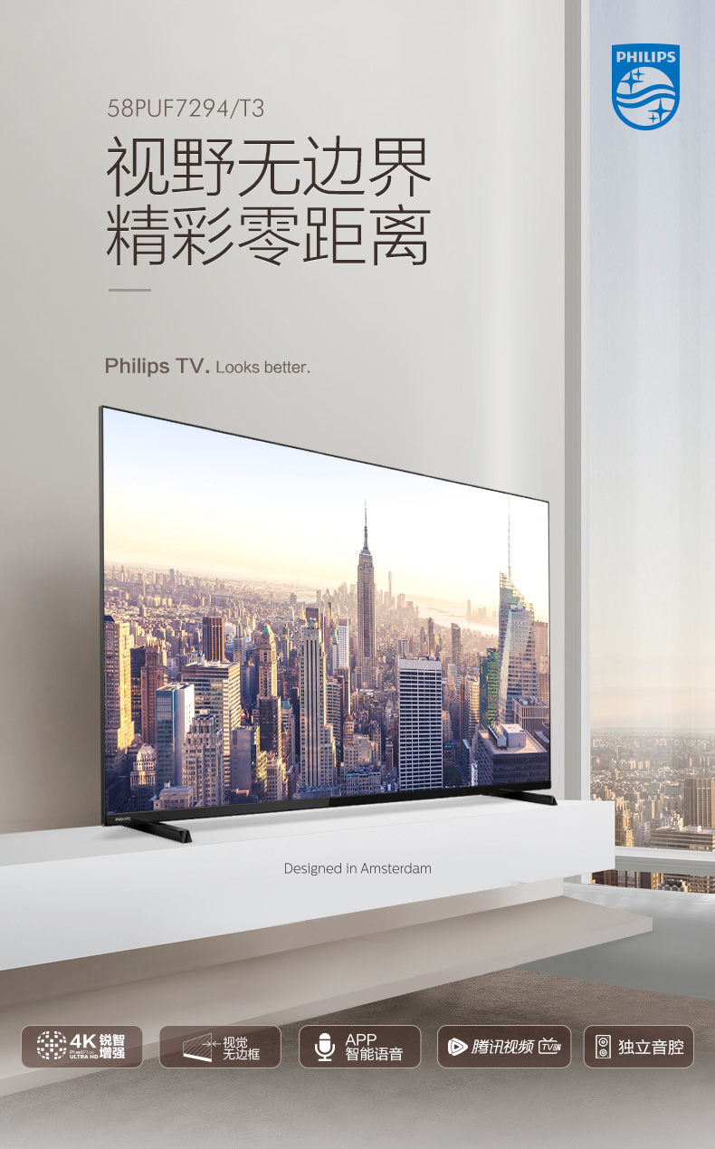 能效等级:二级能效;屏幕尺寸:58-60英寸;产品渠道:线上专供;选购指数:10.0-8.0;品牌类型:合资品牌;电视类型:人工智能,全面屏,4K超清;用户优选:新品电视;分辨率:4k超高清(3840×2160);观看距离:2.5m-3m(46-55英寸);语音控制:支持;遥控类型:红外遥控;HDR显示:支持;支持格式(高清):2160p;屏幕尺寸:58英寸;屏幕比例:16:9;背光方式 背光源是位于液晶显电视背后的一种光源,主要分为侧入式和直下式; 侧入式背光源指的把LED背光放置在屏幕的侧面,通过导光板点亮屏幕。一般侧入式背光的电视更轻薄。 直下式背光源是把LED做成密集的点阵,放置在屏幕的背后,直接照射屏幕。一般色域更好,图像效果更自然,对漏光控制更好,但是机身稍厚。 在一般的电视上,两种背光方式在感官上并没有太大区别,无需作为选购的主要标准。:直下式;扫描方式:逐行扫描;屏幕分辨率:超高清4K;背光源 背光源是位于液晶显电视背后的一种光源,主要分为侧入式和直下式; 侧入式背光源指的把LED背光放置在屏幕的侧面,通过导光板点亮屏幕。一般侧入式背光的电视更轻薄。 直下式背光源是把LED做成密集的点阵,放置在屏幕的背后,直接照射屏幕。一般色域更好,图像效果更自然,对漏光控制更好,但是机身稍厚。 在一般的电视上,两种背光方式在感官上并没有太大区别,无需作为选购的主要标准。:LED;刷屏率:60HZ;上市时间:2020-04;产品颜色:黑色;产品类型:全面屏电视;人工智能电视;4K超清电视;LED电视;能效等级:二级能效;认证型号 认证型号:3C证书上的产品型号。:58PUF7294/T3;产品品牌:飞利浦(Philips);产品型号:58PUF7294/T3;USB2.0接口:2;光纤音频输出:不支持;USB3.0接口:无;HDMI1.4接口:无;HDMI2.0接口:3;HDMI1.3接口:无;耳机端口:不支持;扬声器数量:2个;多声道功能:环绕声;输出功率:8W x 2;单屏重量(kg):14.3;外包装尺寸(宽*高*厚)mm:1425 x 880 x 160;单屏尺寸(宽*高*厚)mm:1289 x 752 x 86(含屏幕包边);含底座重量(kg):14.6;含外包装重量(kg):18.7;含底座尺寸(宽*高*厚)mm:1289 x 773 x 245;底座材