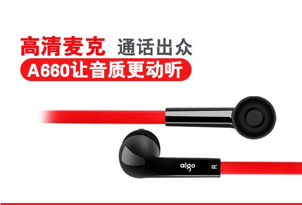 佩戴方式:有线入耳式;连接类型:有线;用途:手机耳机;品牌:爱国者(aigo);颜色:红色;型号:A660;驱动单元类型/直径:06μ Φ10mm 2mW 16Ω Mylar Speaker.;音频接口:3.5毫米音频接口;接口类型:直型;线控功能:无线控;灵敏度:93±3dB at 1KHz.;包装清单:耳机*1、耳胶套*3、三包卡*1、合格证*1;