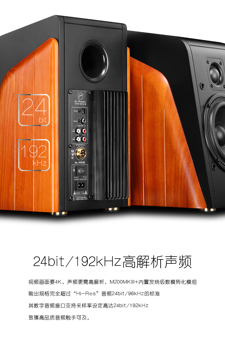 适用场景:居家;分类:桌面音箱;品牌:HiVi惠威;颜色:其他;材质:木质;型号:M200MKIII+;认证型号:M200MKIII+;翻新类型:全新;产品尺寸(mm):194*273*338(W*D*H);接口:莲花头接口;音箱控制:遥控;电源:电源供电;产品净重(kg):12.9KG;理论功率:100W以上;声道:2.0;类型:多媒体音箱;扬声器单元:5.25英寸低音、28mm丝膜高音;线长:2m以上;包装清单:主音箱*1、副音箱*1、遥控器*1、连接线*1、电源线*1、RCA转3.5音频线*1、光纤线*1、说明书*1、保修卡*1、合格证*1;