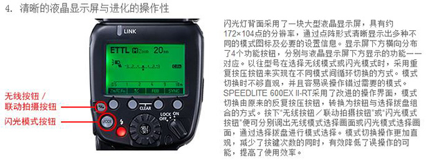 类型:机顶闪光灯;适用机型:佳能;型号:SPEEDLITE 600EX II-RT;产品尺寸(mm):约78.7×143.2×122.7毫米(不包括防尘防水滴适配器);产品净重(kg):约435克(仅闪光灯,不包括电池);包装清单:600EX II-RT闪光灯 *1,说明书*1,保修卡 *1,包装盒*1,;
