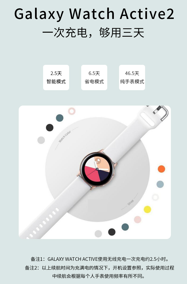 表带材质:其他;触控模式:多点触控;腕带颜色:其他;适用人群:成人;定位级别:其他;充电方式:无线充电;通话类型:蓝牙通话;卫星数量:其他;防水等级:IPX8;AI语音功能:支持AI语音功能;屏幕类型:AMOLED;运动模式:21种-50种;腕带材质:皮革;防水类型:50米防水;优选服务:一年质保;品牌:三星(samsung);系统内存:768 MB;颜色:锋芒金;型号:R820;操作系统:Tizen Based Wearable OS 4.0;认证型号:R820;机身内存:4GB;GPS定位:GPS轨迹;GPS内置芯片;无NFC功能;3G通话/4G通话:蓝牙通话功能;产品尺寸(mm):44 x 44 x 10.9 mm;产品净重(kg):42g;电池容量:340 mAh;蓝牙:支持蓝牙;WIFI:支持WIFI;电芯类型:Exynos9110, Dual 1.15GHz;包装清单:表头*1,充电器1,表带*2(两根组成一对的),三包卡*1、三联贴*1、说明书*1;