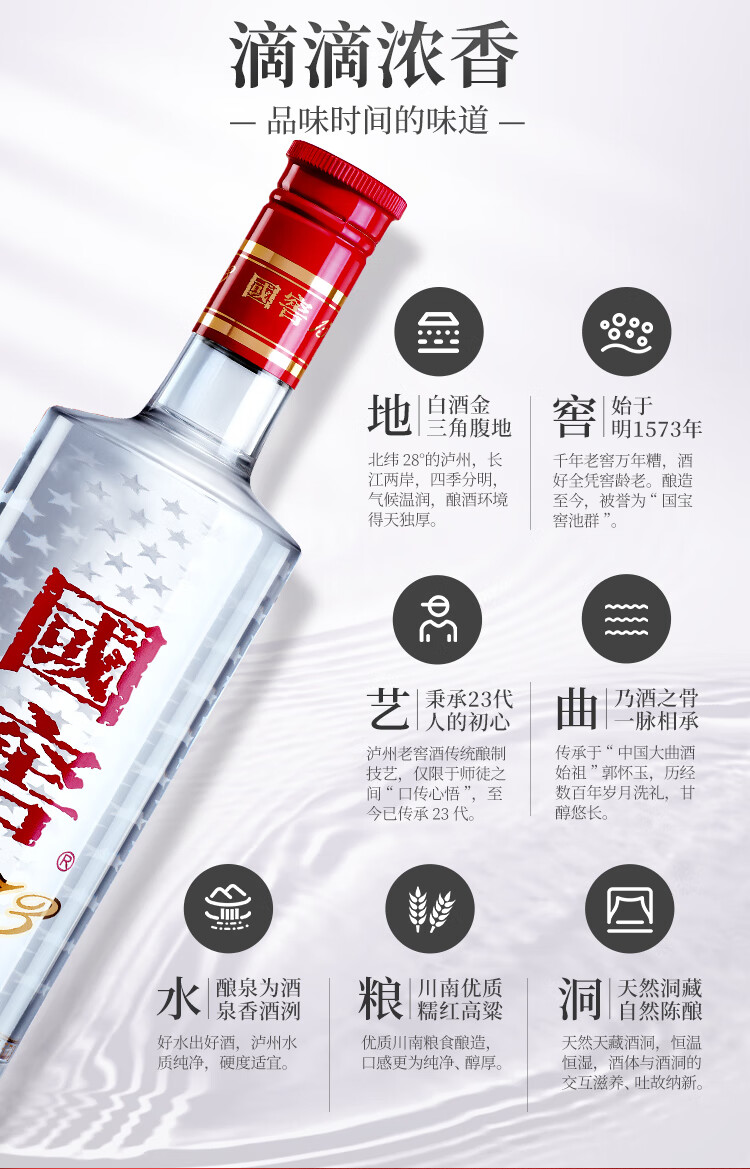 包装:瓶装;容量:500-749mL;香型:浓香型;产地:四川;度数:50度及以上;酒精度:52%vol;容量:500ml;产品重量:1000g;包装清单:国窖1573 52度 500ml x1瓶;