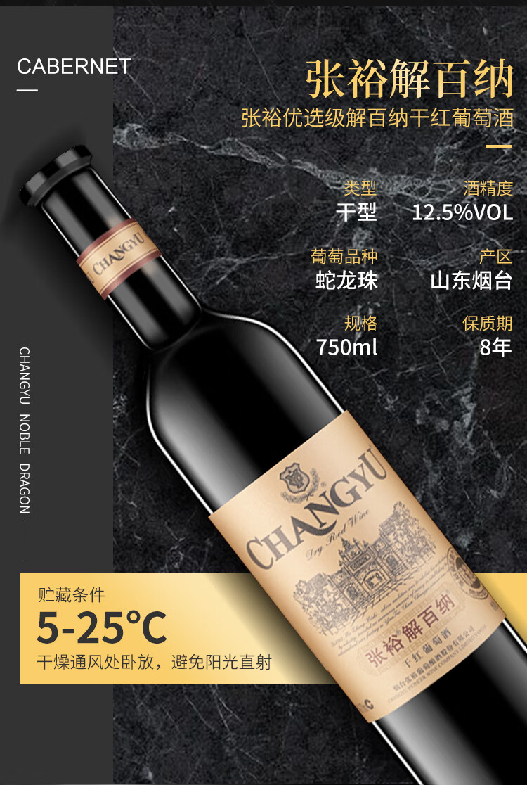 颜色:宝石红;口感:饱满;特性:中级庄;国产/进口:国产;适用场景:礼节拜访,商务宴请,婚礼婚宴,情侣约会,家庭聚会,自斟自饮,闺蜜私语,派对活动;包装:瓶装;酸度:中酸;类别:红葡萄酒;葡萄品种:蛇龙珠(Cabernet Gernischt);类型:静止酒;香型:木香,果香;产地:中国大陆;容量:750mL;甜度:干型;保质期:8年;酒精度:12%vol;原产地:中国大陆;存储方法:避免阳光直射,于5℃~25℃干燥通风处卧放或倒放,有少量沉淀不影响饮用;容量:750ml;产品重量:0kg;包装清单:张裕葡萄酒x1瓶;