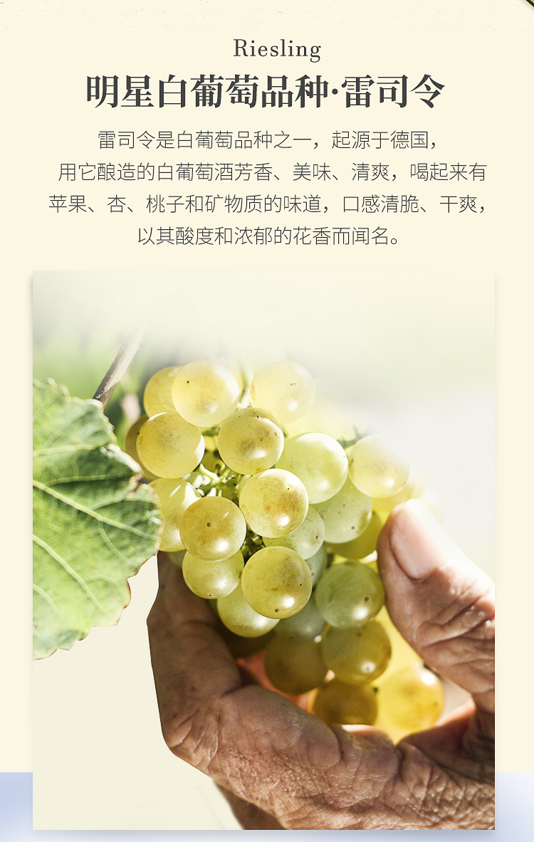 颜色:柠檬黄;口感:清新;特性:中级庄;国产/进口:国产;适用场景:礼节拜访,商务宴请,婚礼婚宴,情侣约会,家庭聚会,自斟自饮,闺蜜私语,派对活动;包装:瓶装;酸度:中酸;类别:白葡萄酒;葡萄品种:雷司令(Riesling);类型:静止酒;香型:花香,果香;产地:中国大陆;容量:750mL;甜度:干型;保质期:8年;酒精度:12%vol;原产地:中国大陆;存储方法:避免阳光直射,于5℃~25℃干燥通风处卧放或倒放,有少量沉淀不影响饮用;容量:750ml;产品重量:0kg;包装清单:张裕特选级雷司令干白葡萄酒 750ml × 1;