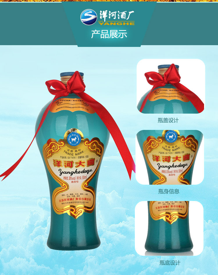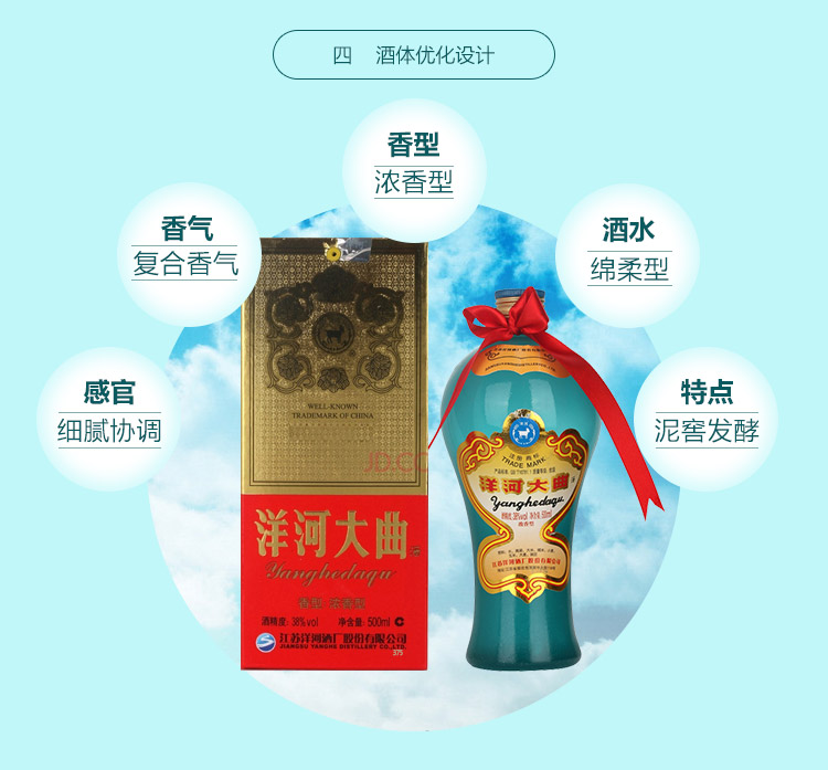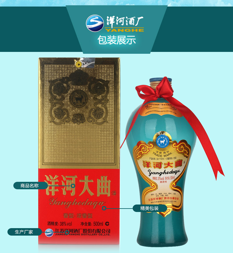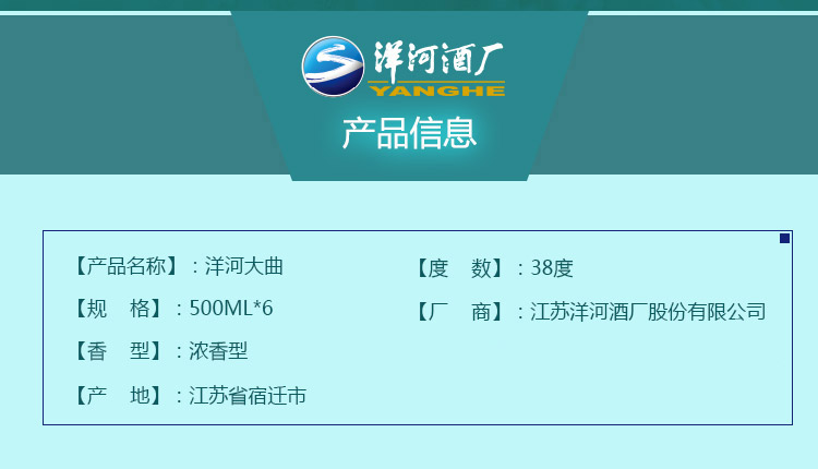 包装:整箱装;容量:750mL及以上;香型:浓香型;产地:江苏;度数:35-39度;酒精度:38%vol;容量:500ml;产品重量:6400g;包装清单:洋河大曲38度 500ml×6;