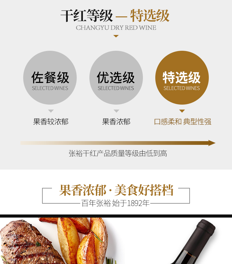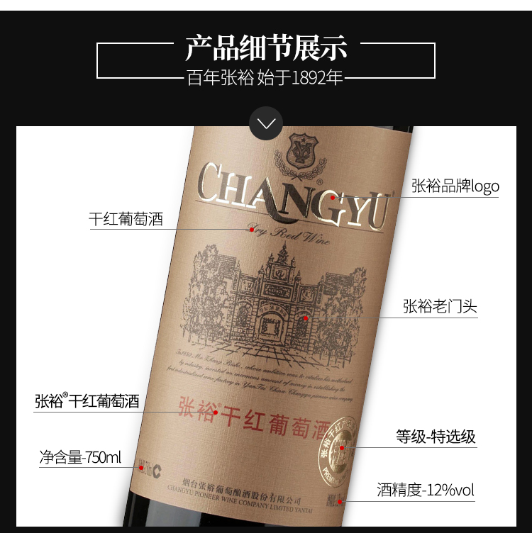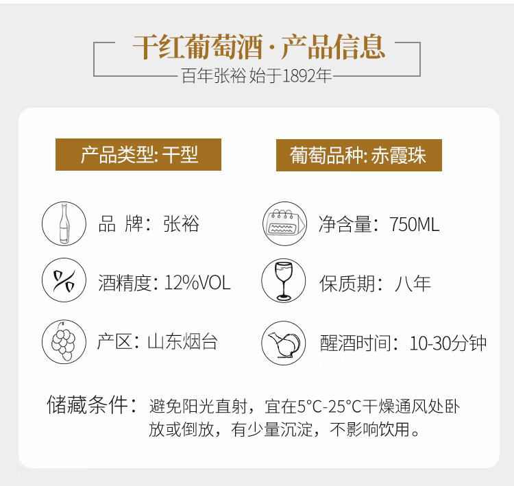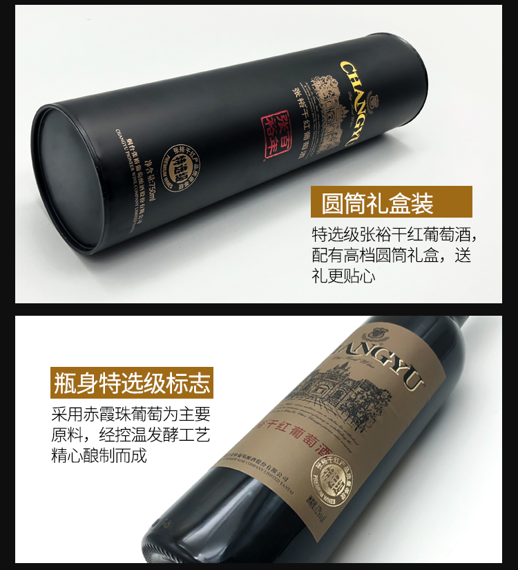 颜色:石榴红;口感:柔和;特性:其它;国产/进口:国产;适用场景:礼节拜访,商务宴请,婚礼婚宴,情侣约会,家庭聚会,自斟自饮,闺蜜私语,派对活动;包装:瓶装;酸度:中酸;类别:红葡萄酒;葡萄品种:赤霞珠(Cabernet Sauvignon);类型:静止酒;香型:果香;产地:中国大陆;容量:750mL;甜度:干型;系列:普通干红;保质期:8年;酒精度:12%vol;原产地:中国大陆;存储方法:避免阳光直射,于5℃~25℃干燥通风处卧放或倒放,有少量沉淀不影响饮用;容量:750mL;产品重量:1.41kg;包装清单:张裕特选级干红葡萄酒(圆筒装)750ml x1;