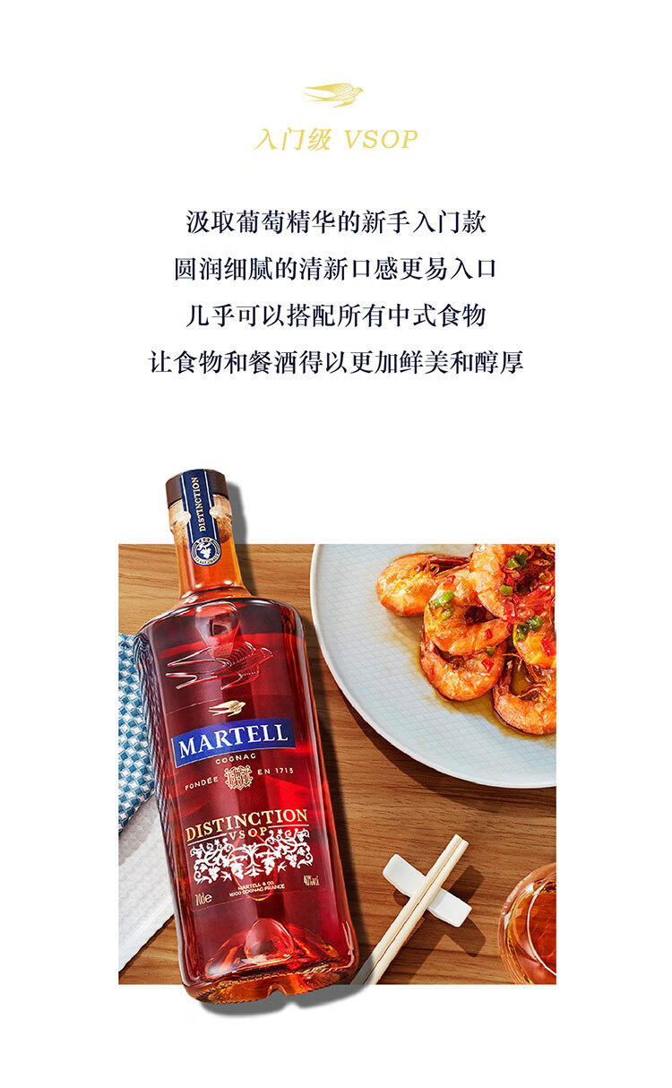 特性:VSOP;国产/进口:进口;产地:法国;适用场景:亲友馈赠,自斟自饮,商务宴请,家庭聚会;包装:瓶装;容量:700-999mL;原料:葡萄、水、焦糖色;保质期:无;酒精度:40%vol;存储方法:常温避光;产品重量:1.37kg;容量:700mL;包装清单:马爹利(Martell)洋酒 鼎盛 VSOP 干邑 白兰地 700ml*1;