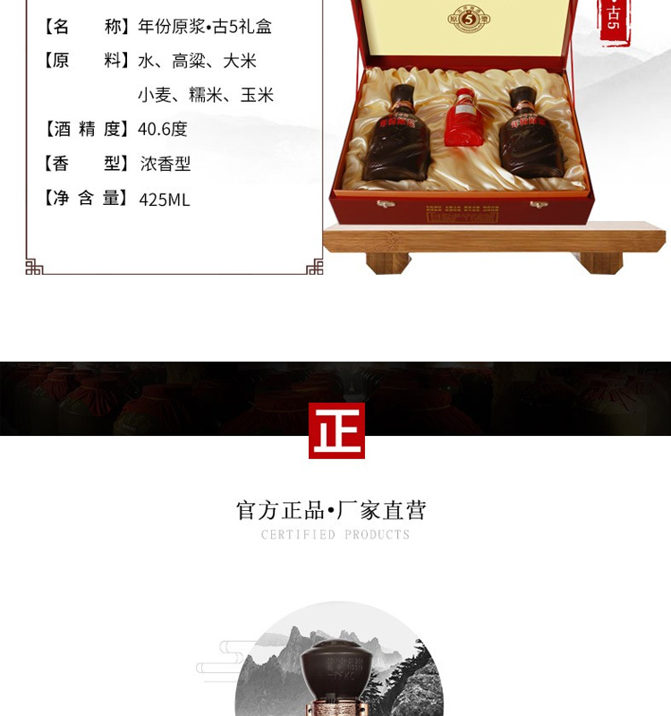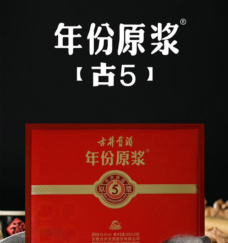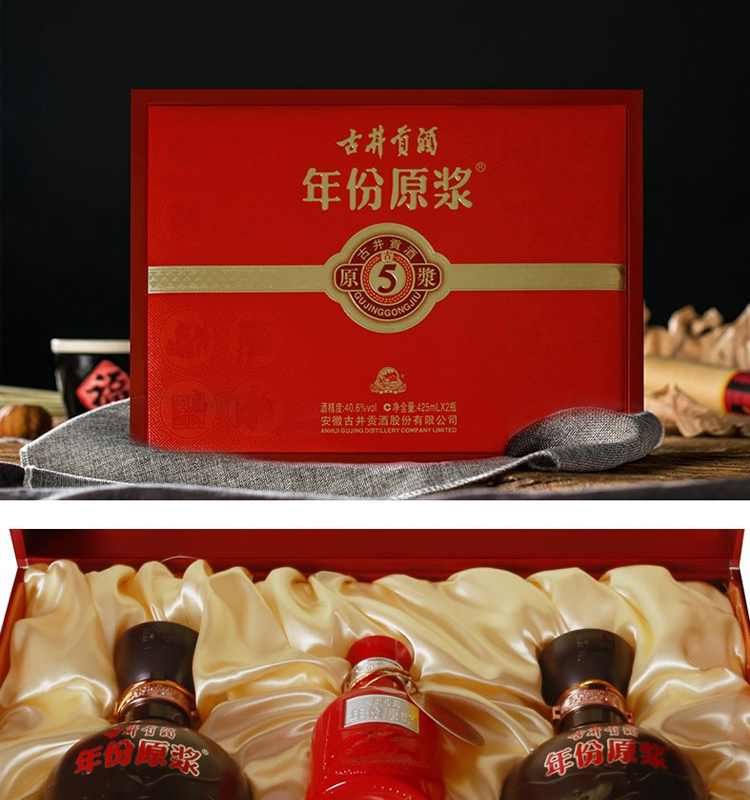 包装:礼盒装;容量:376-499mL;香型:浓香型;产地:安徽;度数:40-49度;酒精度:40.6%vol;容量:0;产品重量:4100g;包装清单:40.6度古井贡酒五年礼盒*1;