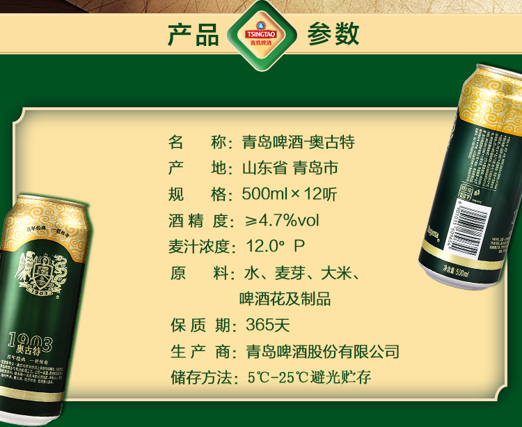 国产/进口:国产;产地:中国大陆;适用场景:礼节拜访,家庭聚会,自斟自饮,情侣约会,烧烤撸串,派对必备,酒吧夜店;包装:听装;容量:500mL;类别:黄啤酒;原料:水、麦芽、大米、啤酒花及制品;保质期:365天;酒精度:4.7;原产地:中国大陆;原麦汁浓度:12.0°P;存储方法:5°C-25°C避光贮存,禁止加热或0°C以下冷冻;产品重量:6.44kg;容量:500;包装清单:青岛(Tsingtao)啤酒奥古特12度500ml*12听 德国进口工艺大罐整箱装 一世传奇 口感醇厚 整箱装*1箱;