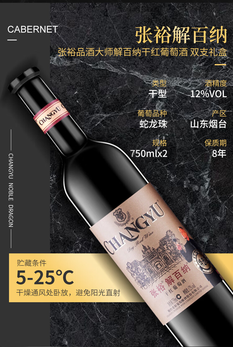张裕 解百纳(品酒大师)干红葡萄酒 750ml*2瓶双支礼盒 国产红酒