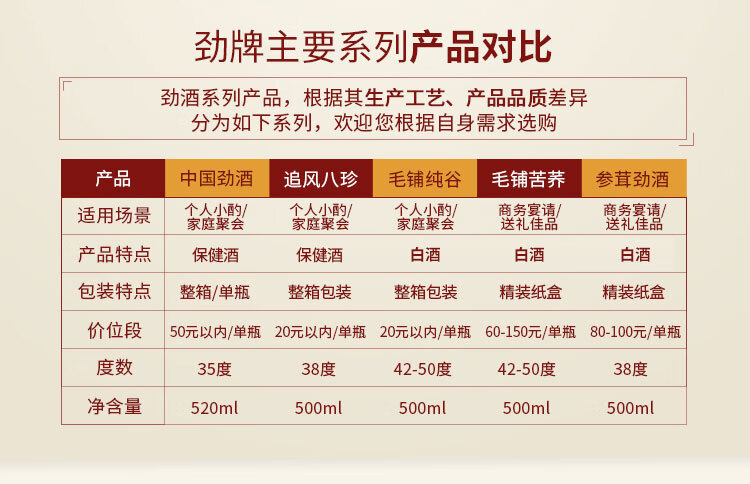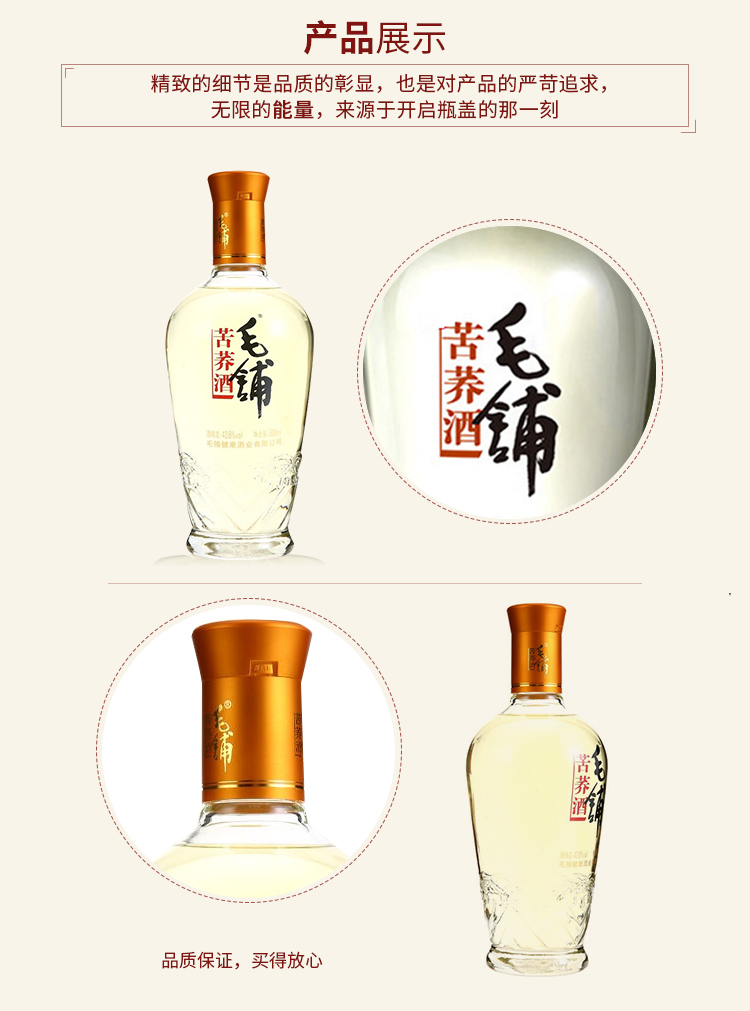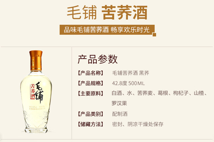 包装:瓶装;容量:500-749mL;香型:其它;产地:湖北;度数:40-49度;酒精度:42.8%vol;容量:500ml;产品重量:1430g;包装清单:劲牌毛铺苦荞酒 黑荞 42.8度 500ml*1;