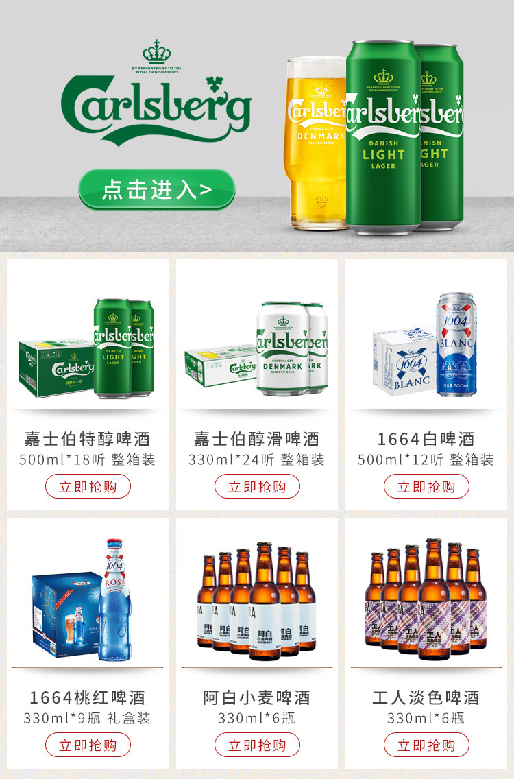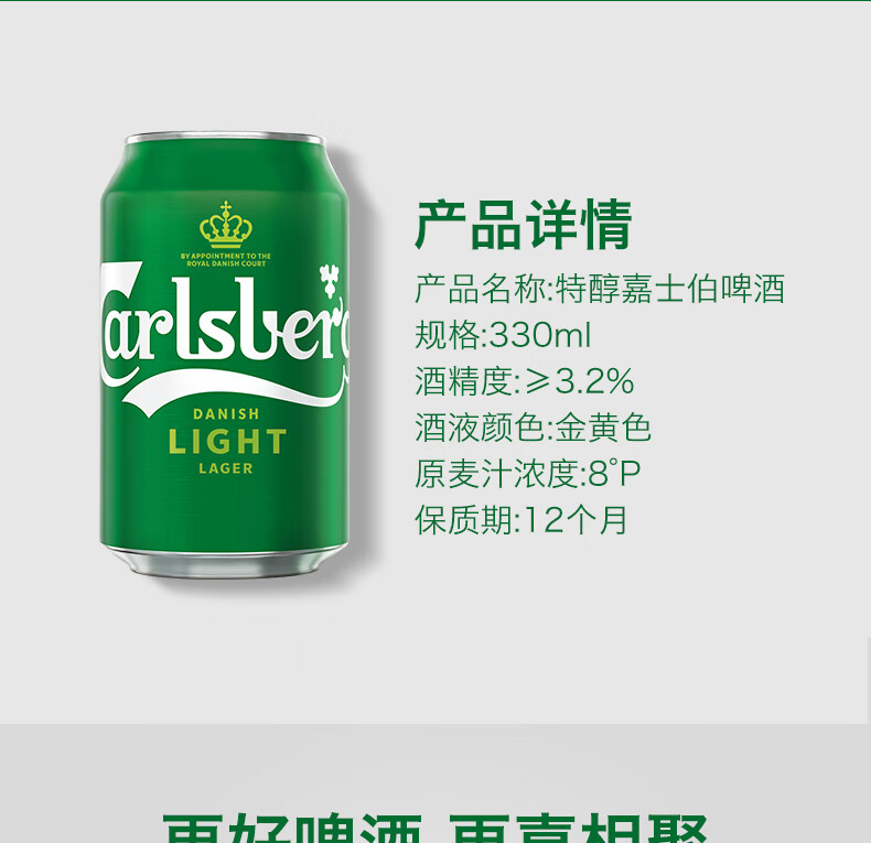 国产/进口:国产;产地:中国大陆;适用场景:礼节拜访,家庭聚会,自斟自饮,情侣约会,烧烤撸串,派对必备,酒吧夜店;包装:听装;容量:330mL;类别:黄啤酒;原料:水、麦芽、酒花;保质期:1年;酒精度:≥3.2% Vol;原产地:中国大陆;原麦汁浓度:10.3;存储方法:阴凉避光存储;产品重量:8.53kg;容量:330;包装清单:嘉士伯特纯啤酒330ml*24听 × 1;