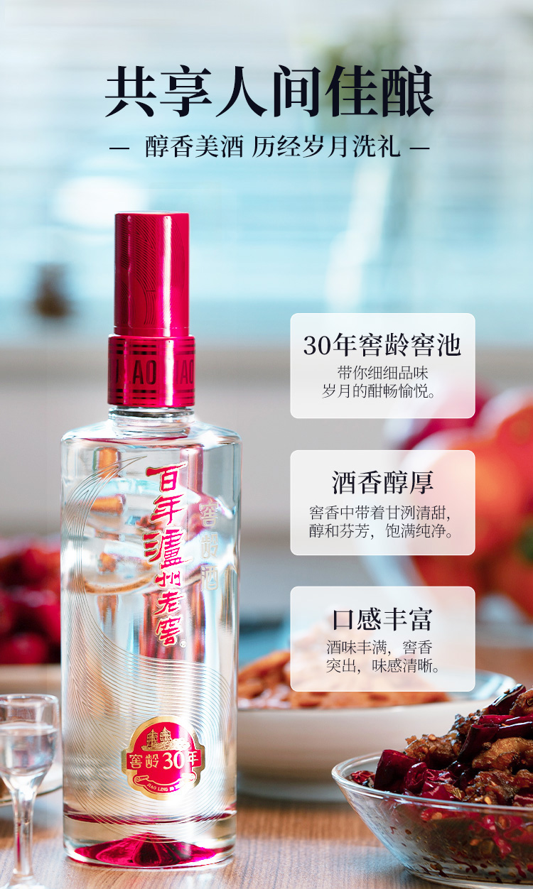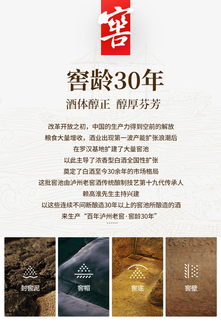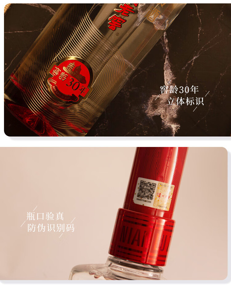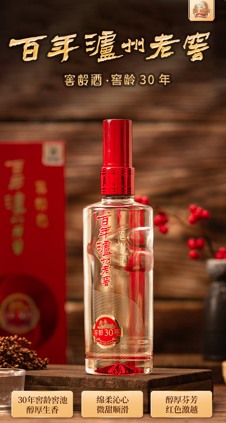 包装:整箱装;容量:376-499mL;香型:浓香型;产地:四川;度数:50度及以上;酒精度:52%vol;容量:500ml*6瓶;产品重量:10000g;包装清单:窖龄30年500ml × 6;