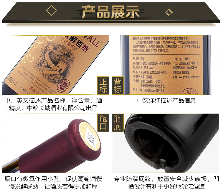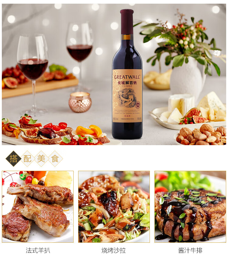 颜色:宝石红;口感:柔和;特性:其它;国产/进口:国产;适用场景:家庭聚会,礼节拜访,商务宴请,婚礼婚宴,情侣约会,自斟自饮,闺蜜私语,派对活动;包装:礼盒装;酸度:中酸;类别:红葡萄酒;葡萄品种:其它;类型:静止酒;香型:果香;产地:中国大陆;容量:376-749mL;甜度:干型;保质期:3650天;酒精度:12.5%vol;原产地:中国大陆;存储方法:避免阳光直射,于5℃~25℃干燥通风处卧放或倒放为宜。;容量:650ml;产品重量:2.27kg;包装清单:长城解百纳优选级干红葡萄酒 650ml*2瓶 (促销装)*1;