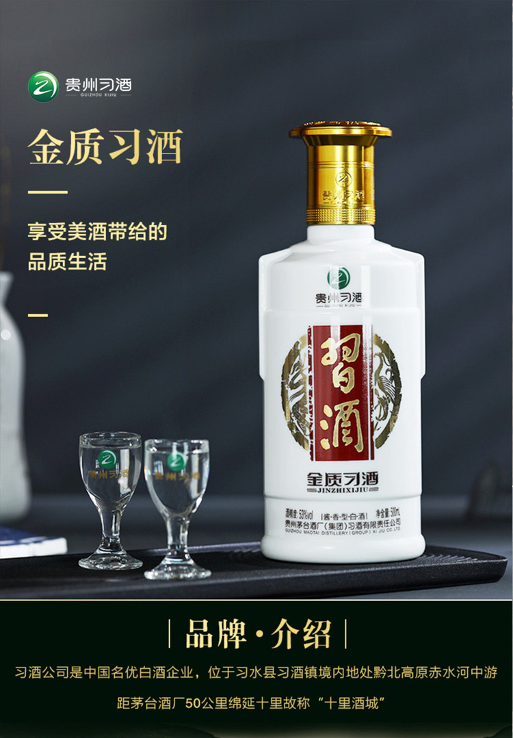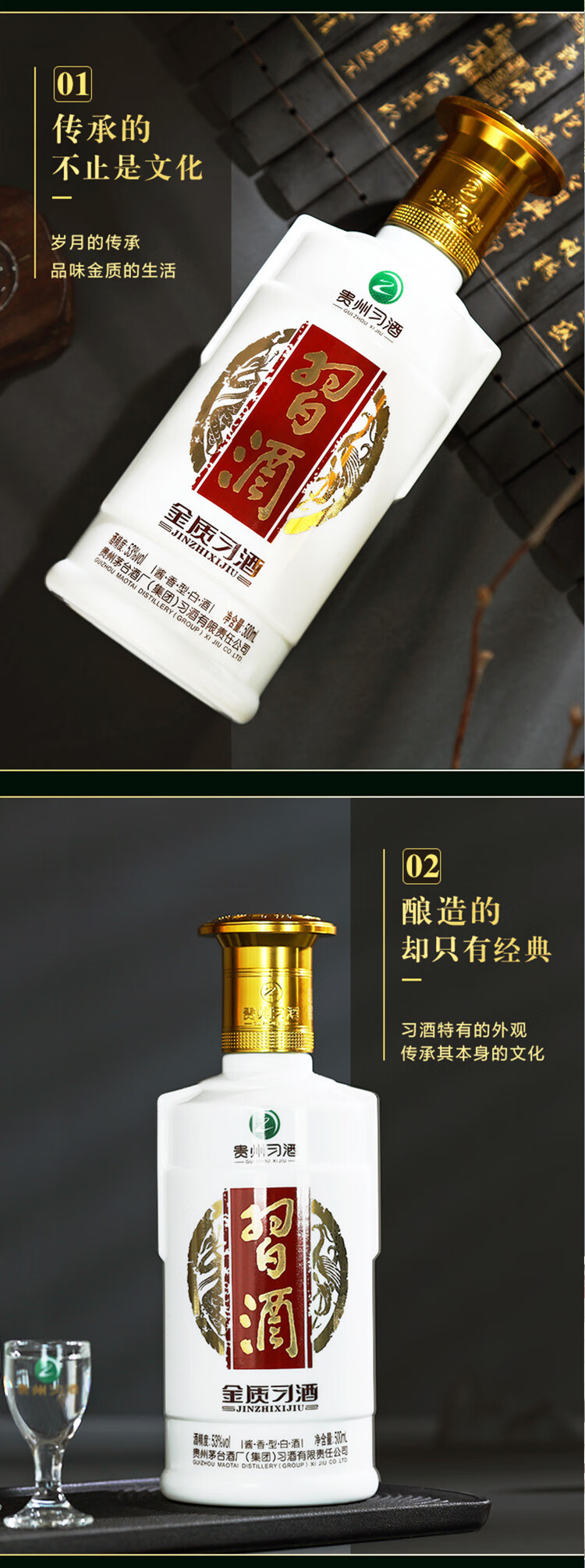 包装:瓶装;容量:500-749mL;香型:酱香型;产地:贵州;度数:50度及以上;酒精度:53%vol;容量:500ml;产品重量:1.14g;包装清单:习酒金质53度500ml X 1;