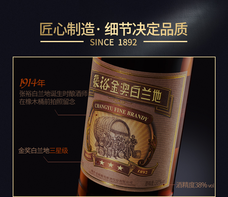 颜色:琥珀;口感:强劲;特性:其它;国产/进口:国产;适用场景:礼节拜访,商务宴请,婚礼婚宴,情侣约会,家庭聚会,自斟自饮,闺蜜私语,派对活动;包装:瓶装;酸度:中酸;类别:白葡萄酒;葡萄品种:其它;类型:静止酒;香型:果香;产地:中国大陆;容量:376-749mL;甜度:干型;系列:白兰地;保质期:无;酒精度:38%vol;原产地:中国大陆;存储方法:避免阳光直射,于5℃~25℃干燥通风处卧放或倒放,有少量沉淀不影响饮用;容量:700ml;产品重量:1.17kg;包装清单:葡萄酒700ml x1;