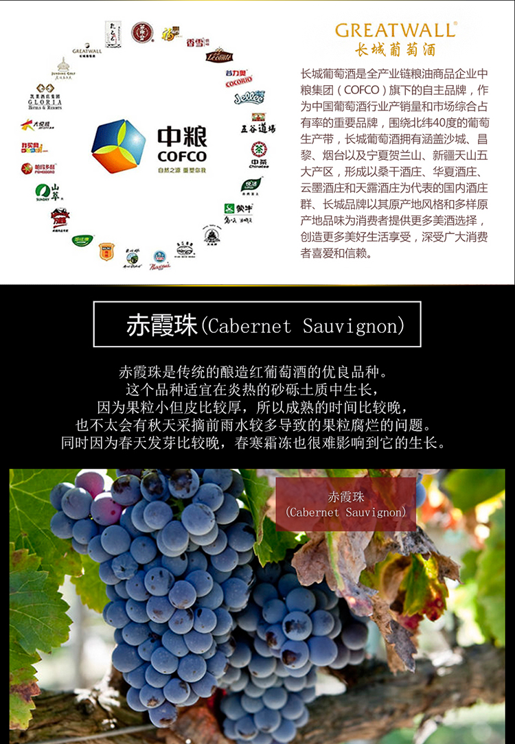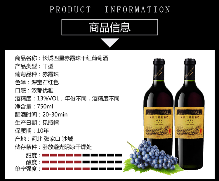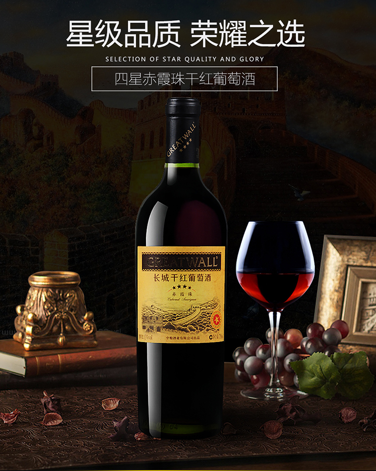 颜色:宝石红;口感:饱满;特性:其它;国产/进口:国产;适用场景:商务宴请;包装:整箱装;酸度:中酸;类别:红葡萄酒;葡萄品种:赤霞珠(Cabernet Sauvignon);香型:果香;产地:中国大陆;容量:750mL以上;甜度:干型;保质期:3650;酒精度:13%vol;原产地:中国大陆;存储方法:避免阳光直射,于5℃-25℃干燥通风处卧放或倒放为宜。;容量:750ml*6瓶;产品重量:10kg;包装清单:长城星级系列 四星赤霞珠干红葡萄酒 整箱装 750ml*6瓶 *1箱;