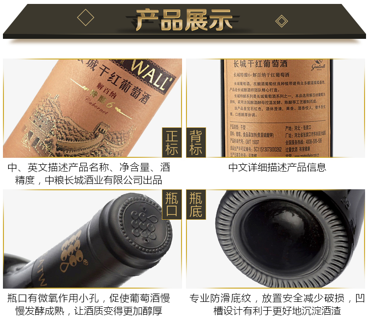 长城 特酿6年解百纳干红葡萄酒 750ml*6瓶 圆筒整箱装 中粮出品