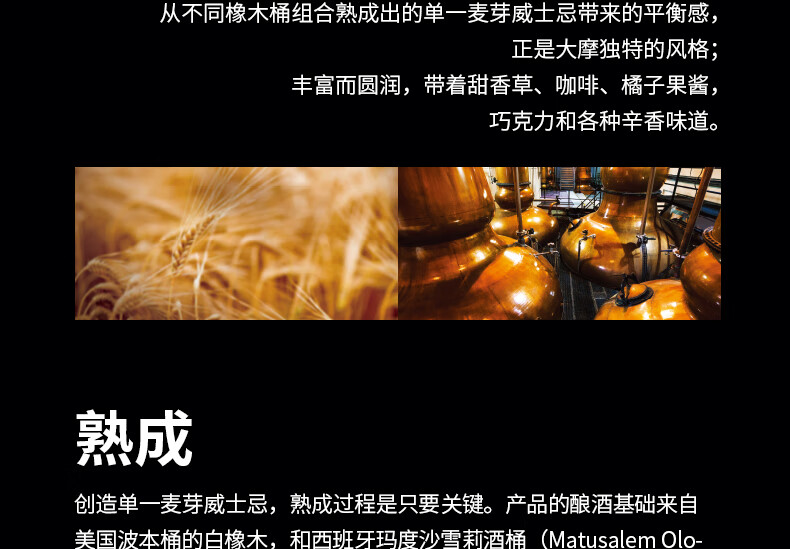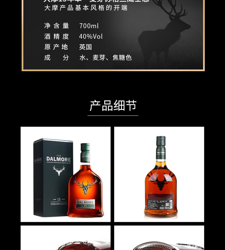 类型:单一麦芽威士忌;产地:苏格兰;适用场景:自斟自饮,亲友馈赠,家庭聚会,商务宴请,情侣约会,闺蜜私语;包装:瓶装;容量:700-999mL;阶段:进阶优选;原料:水、麦芽、焦糖色;保质期:详见实物酒标;酒精度:40%vol;存储方法:常温、避光贮藏;产品重量:1.40kg;容量:700mL;包装清单:帝摩15年纯麦威士忌700ml × 1;