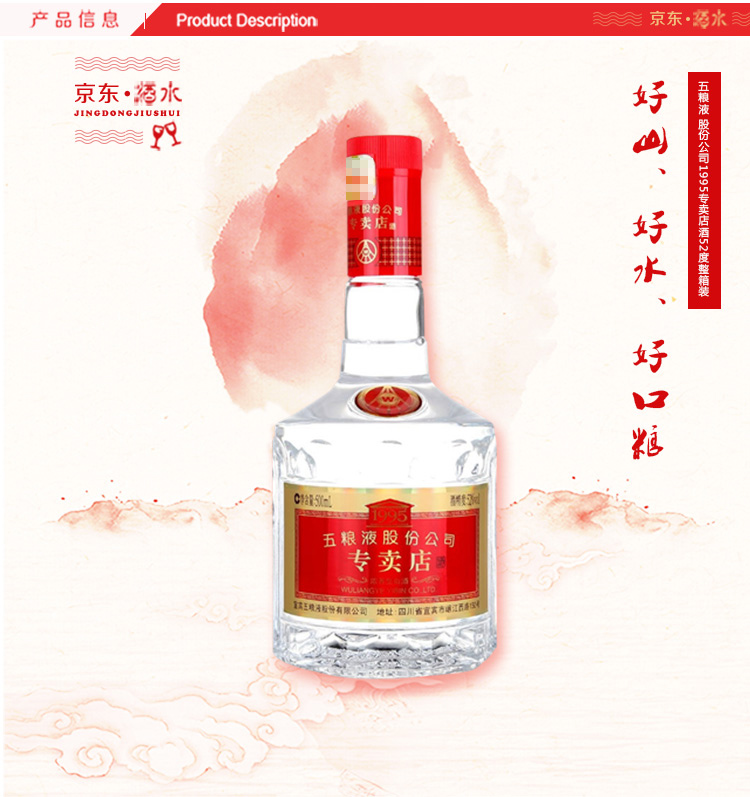 包装:整箱装;容量:376-499mL;香型:浓香型;度数:50度及以上;香型:浓香型;产地:四川;酒精度:52%vol;包装:整箱装;产品重量:8000g;容量:500ML;包装清单:五粮液1995专卖店酒52度整箱500ml*6瓶;