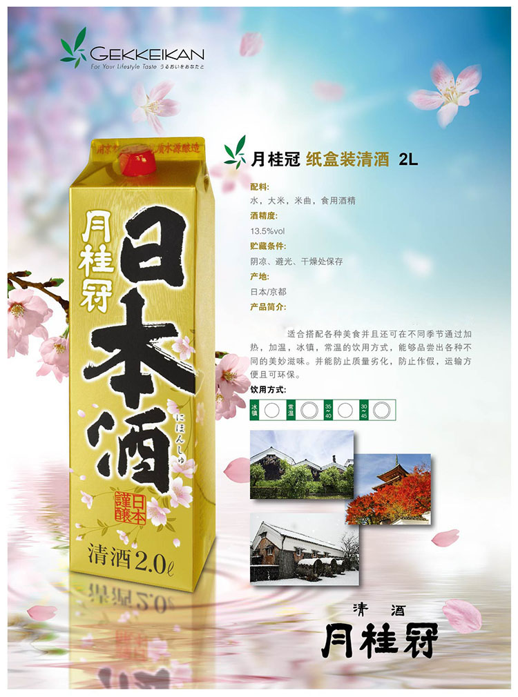 适用场景:家庭聚会,情侣约会,自斟自饮;包装:瓶装;容量:1L及以上;国产/进口:进口;产地:日本;容量:2L;产品重量(kg):2.07;包装:单瓶;原料:水、大米、米曲、食用酒精;存储方法:常温避光保存;酒精度:13.5%vol;保质期:长期保存;产地:日本;包装清单:月桂冠(Gekkeikan)清酒纸盒 2L*1;