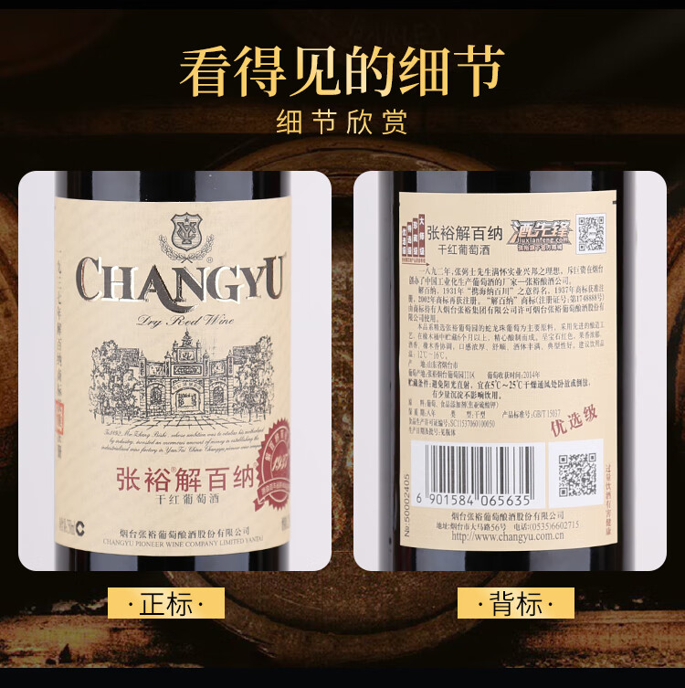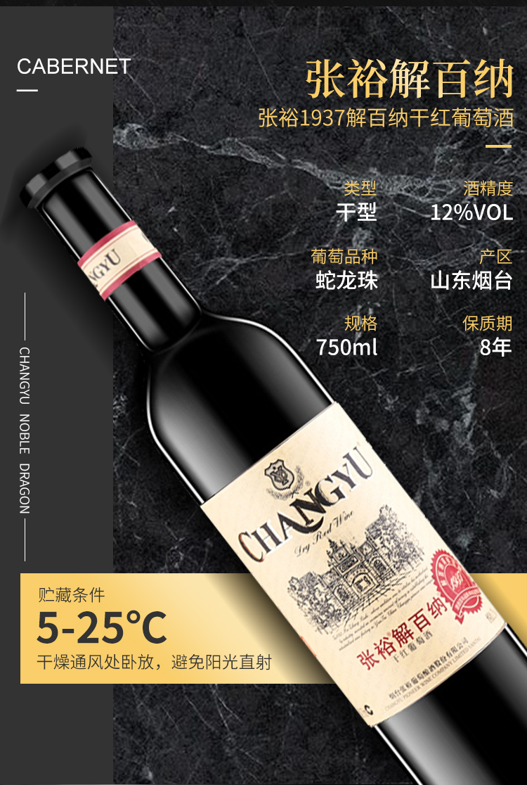 张裕(1937纪念版)解百纳 干红葡萄酒 750ml 国产红酒