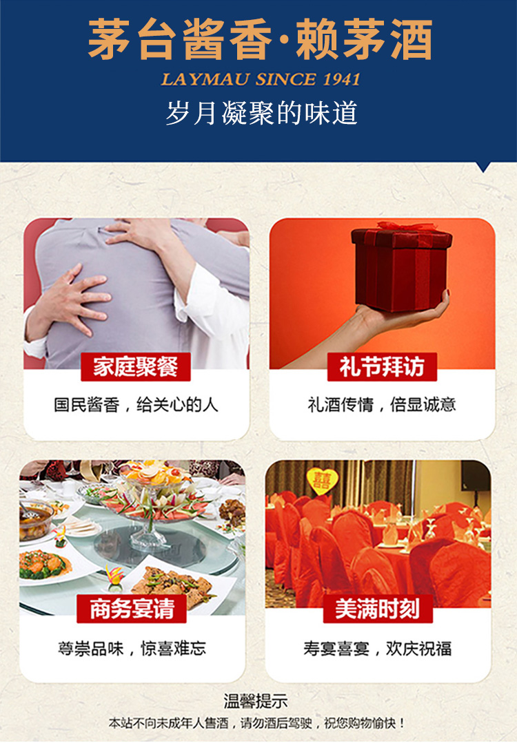 包装:瓶装;容量:376-499mL;香型:酱香型;产地:贵州;度数:50度及以上;酒精度:53%vol;容量:500ml;产品重量:0g;包装清单:茅台 赖茅(传承·蓝)53度500ml*1;