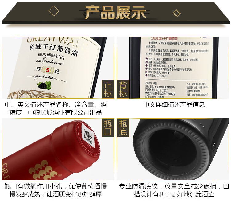 颜色:宝石红;采摘年份:2018年;口感:饱满;特性:精品葡萄酒;国产/进口:国产;适用场景:家庭聚会,礼节拜访,商务宴请,婚礼婚宴,情侣约会,自斟自饮,闺蜜私语,派对活动;包装:瓶装;酸度:中酸;类别:红葡萄酒;葡萄品种:赤霞珠(Cabernet Sauvignon),蛇龙珠(Cabernet Gernischt),品丽珠(Cabernet Franc);类型:静止酒;香型:果香,植物;产地:中国大陆;容量:750mL;甜度:干型;保质期:3650天;酒精度:12.5%vol;原产地:中国大陆;存储方法:避免阳光直射,于5℃~25℃干燥通风处卧放或倒放为宜。;容量:750ml;产品重量:1.32kg;包装清单:长城(GreatWall)红酒 特选5橡木桶解百纳干红葡萄酒 750ml *1瓶;