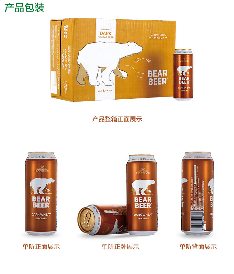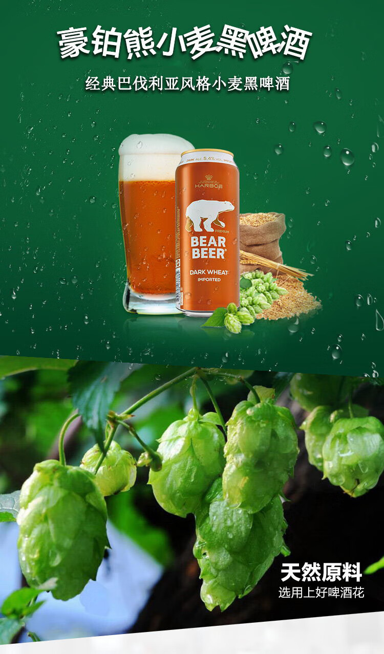 适用场景:家庭聚会,烧烤撸串,酒吧夜店;包装:听装;容量:500mL;类别:黑啤酒;国产/进口:进口;产地:德国;原料:水、小麦芽、大麦芽、啤酒花浸膏、啤酒花、酵母;保质期:15个月;酒精度:5.4%vol;原产地:德国;原麦汁浓度:12°P;存储方法:常温保存;产品重量:12.76kg;容量:500mL;包装清单:德国进口豪铂熊(Harboe)豪铂熊小麦黑啤酒500ml*24整箱装;