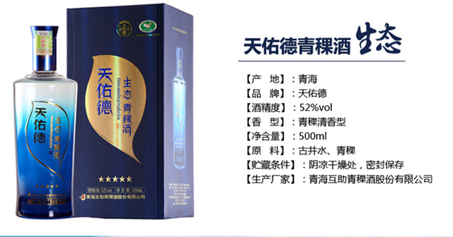 包装:整箱装;容量:500-749mL;香型:清香型;产地:青海;度数:50度及以上;酒精度:52%vol;容量:500ml;产品重量:10.62g;包装清单:青海天佑德 青稞酒 五星生态 52度 清香型白酒 整箱装 500ml*6(内含3个礼品袋);