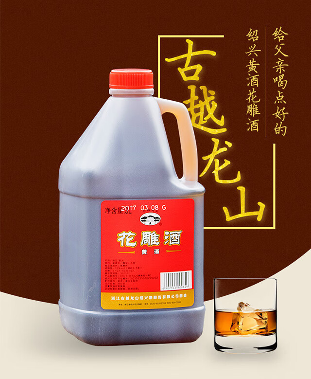 口味:半干型黄酒(总糖:15.0-40.0g/L);度数:10-19度;产地:其它;适用场景:家庭聚会,礼节拜访,商务宴请,自斟自饮,朋友小聚;包装:桶装;容量:1-5L;容量:3L;产品重量(kg):3.220;包装:桶装;存储方法:阴凉干燥;口味:半干型黄酒(总糖:15.0-40.0g/L);酒精度:12;保质期:36个月;原产地:其它;包装清单:古越龙山绍兴黄酒桶装3L花雕酒*1(新老包装随机发货);