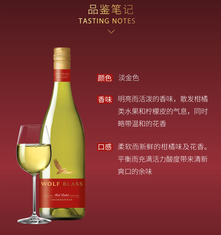 颜色:金色;口感:清新;特性:精品葡萄酒;国产/进口:海外直采;适用场景:礼节拜访,商务宴请,婚礼婚宴,情侣约会,家庭聚会,收藏,自斟自饮,闺蜜私语,派对活动;包装:瓶装;酸度:高酸;类别:白葡萄酒;葡萄品种:霞多丽(Chardonnay);类型:静止酒;产地:澳大利亚;容量:750mL;甜度:干型;保质期:无;酒精度:13.5;原产地:澳大利亚;存储方法:常温,避光,卧放;容量:750ml;产品重量:1.15kg;包装清单:葡萄酒 × 1;