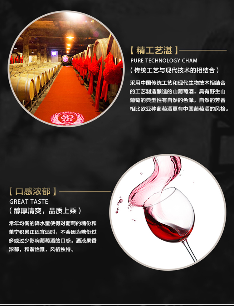 通化 长白山特制 山葡萄甜红葡萄酒 750ml*6瓶整箱装 甜酒 红酒